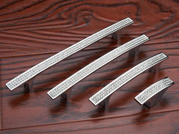 Enhance your cabinetry with these crystal drawer pulls featuring sparkling rhinestone accents set in polished chrome. Available in 3.75", 5", and 6.25" center-to-center sizes, they provide a precise fit for a variety of drawers and cabinets. The sleek chrome finish combines durability with a modern aesthetic, while the crystal detailing adds a refined touch. Ideal for elevating both residential and commercial interior designs with subtle elegance and lasting quality.