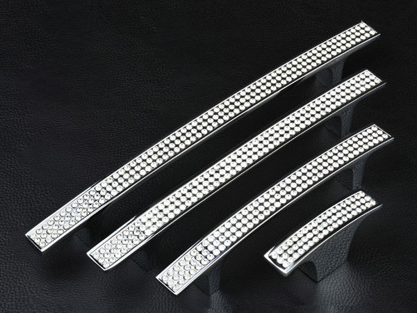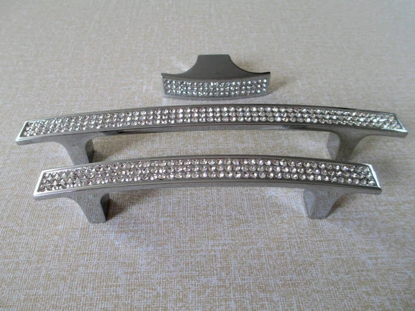 Crystal Drawer Pulls, Rhinestone Cabinet Handles, Polished Chrome, 3.75", 5", 6.25" Center