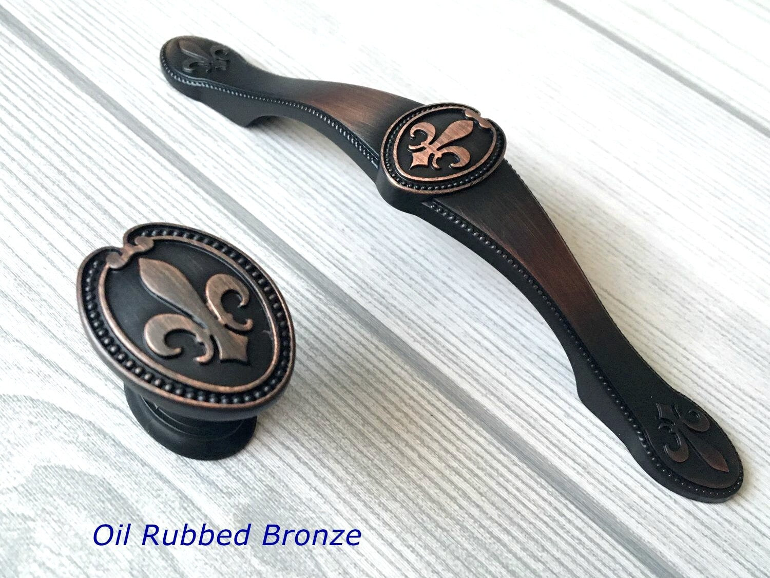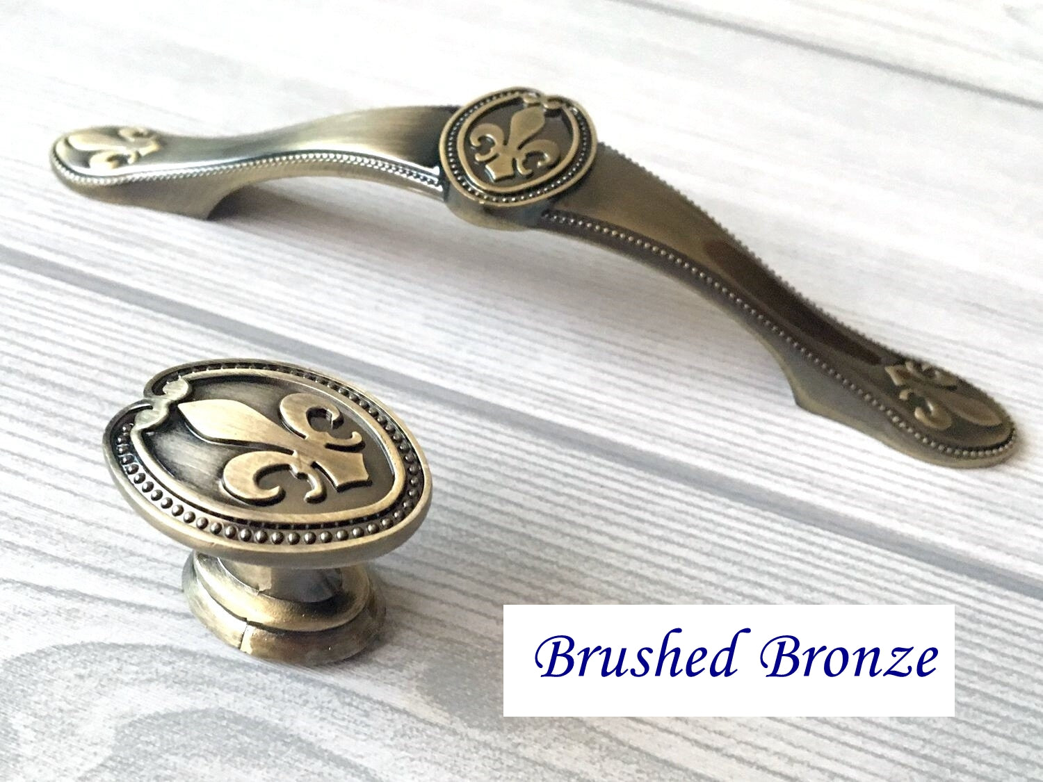 Fleur De Lis Cabinet Pulls and Knobs, 3.75" Centers, Bronze, Creamy White
