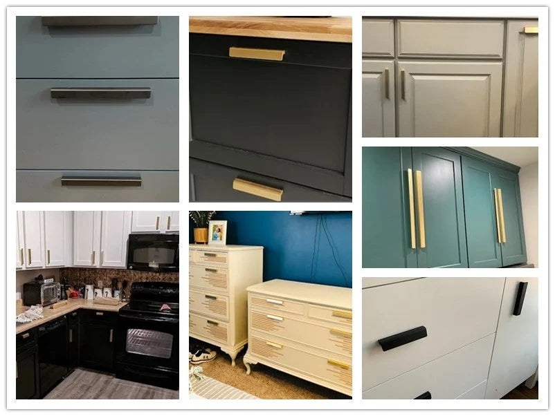 Elevate your kitchen with these Brushed Gold Brass and black Cabinet Pull Handles crafted from durable aluminum. Their mid-century modern design adds a timeless, sophisticated touch while ensuring long-lasting functionality.
