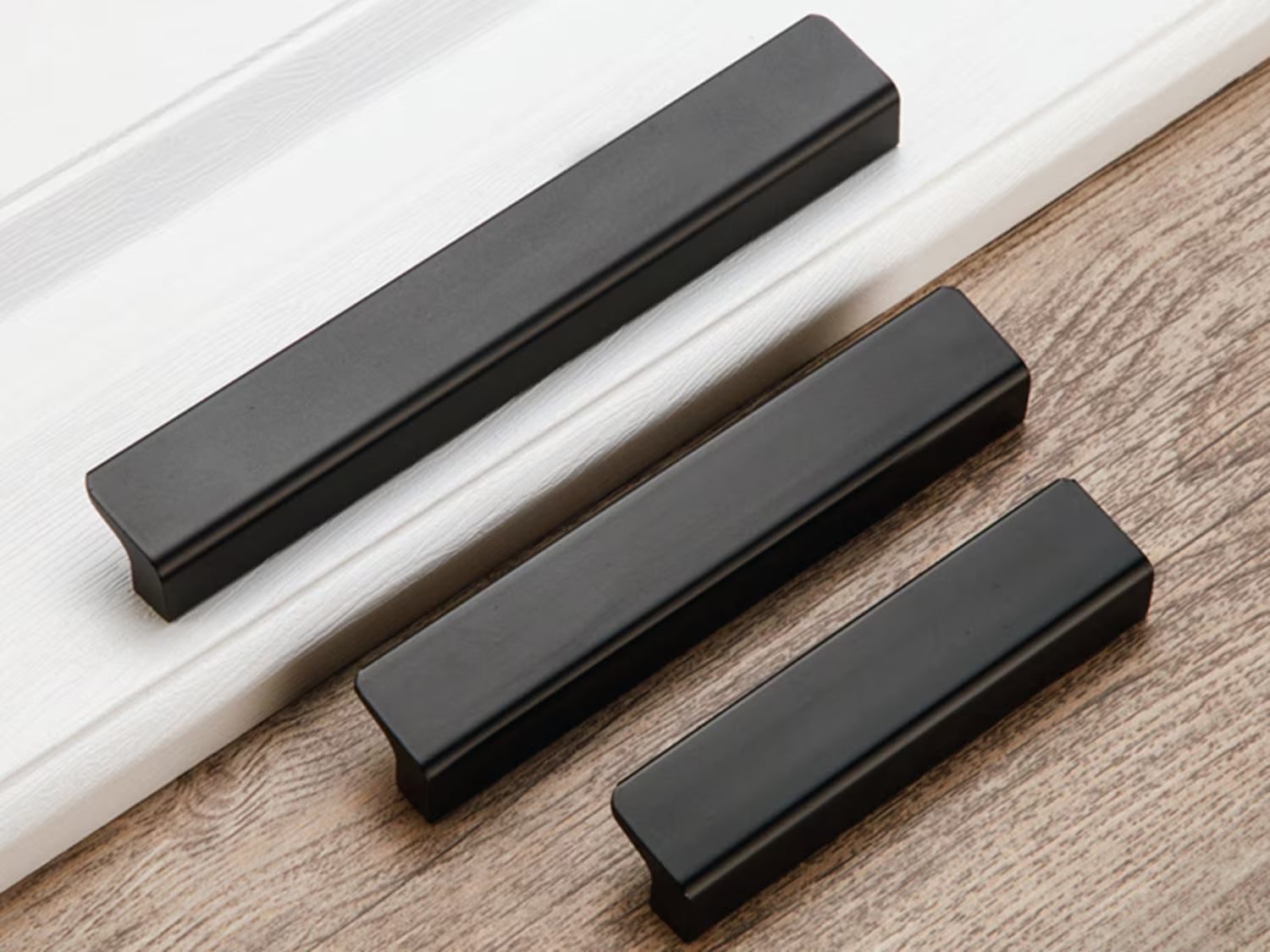 Gold Brass Cabinet Pull Handles, Black, Mid Century Modern, Kitchen Hardware