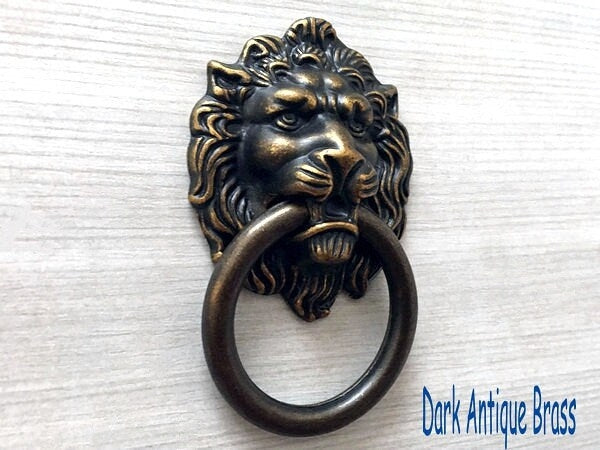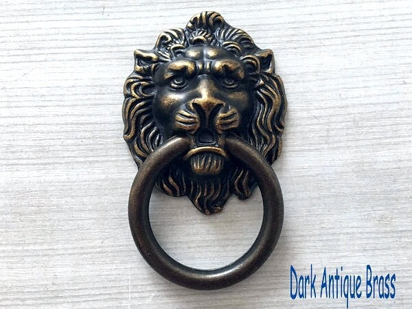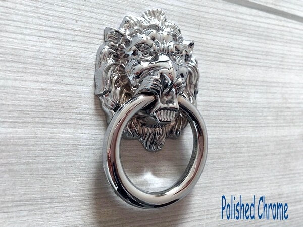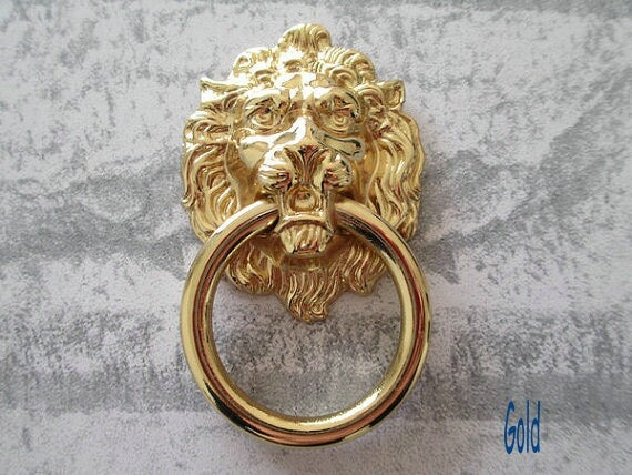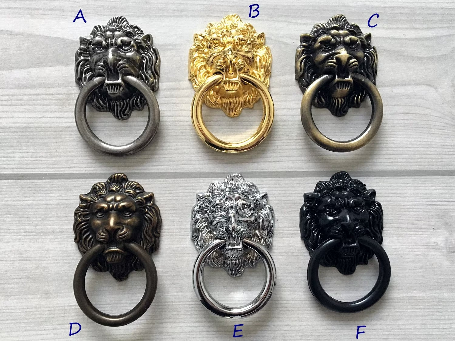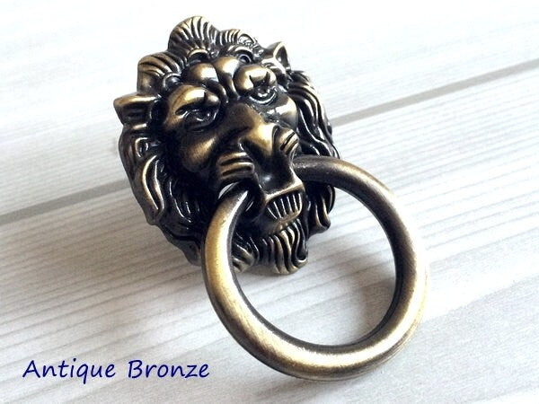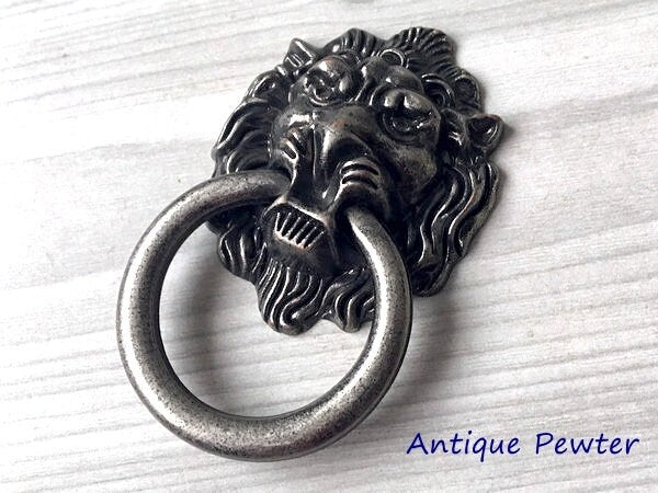 Lion Knob, Door Knocker, Lion Head Drop Ring Drawer Pull, Gold, Black, Bronze, Pewter, Silver