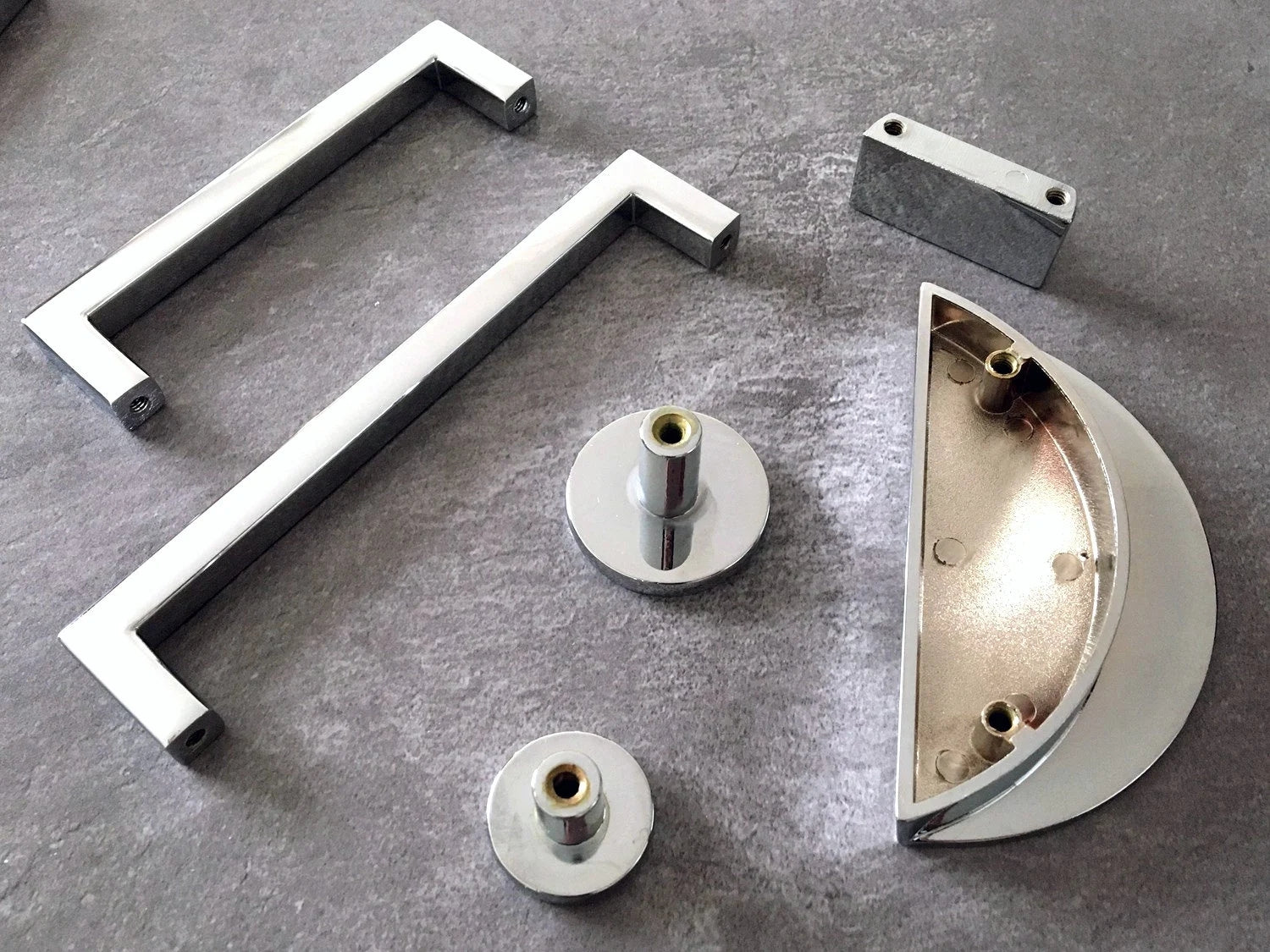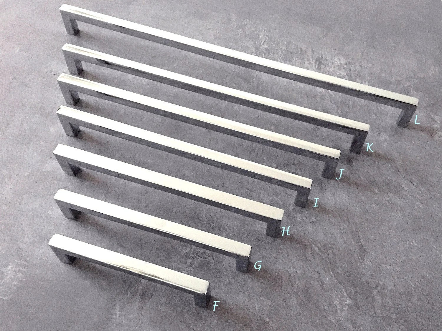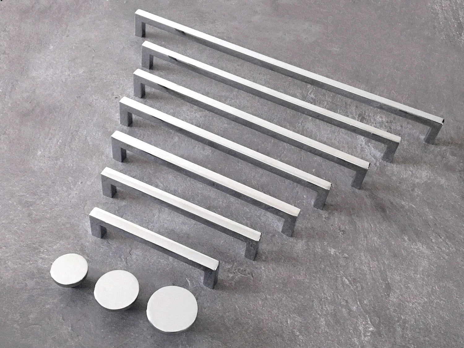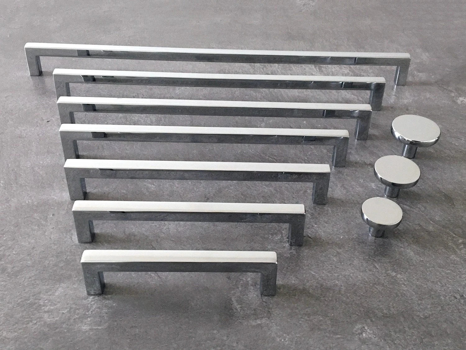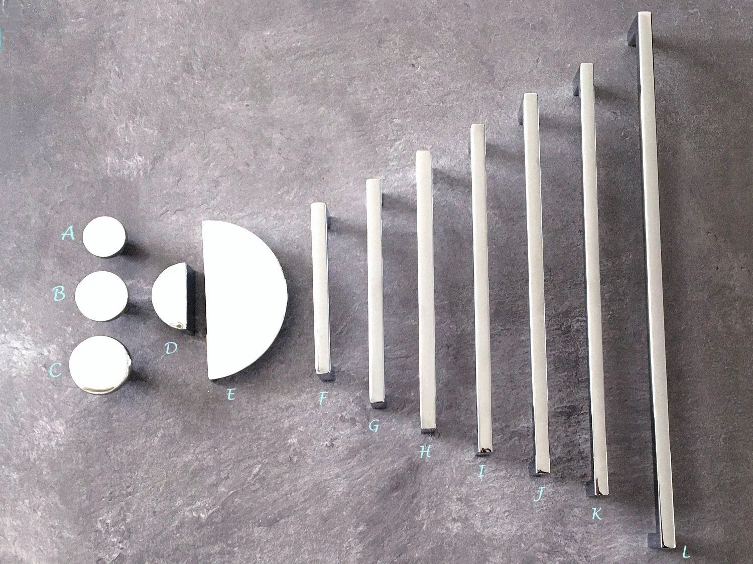 These slim square cabinet handles and half-moon drawer pulls offer a sleek, minimalist design in polished chrome, ideal for modern kitchens. Perfect for drawers and cabinets, they provide a refined, professional touch to your kitchen hardware.