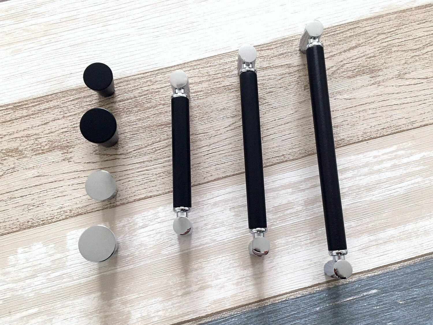 Modern Cupboard Bar Handle, Black Silver Wardrobe Pull, Drawer Knob