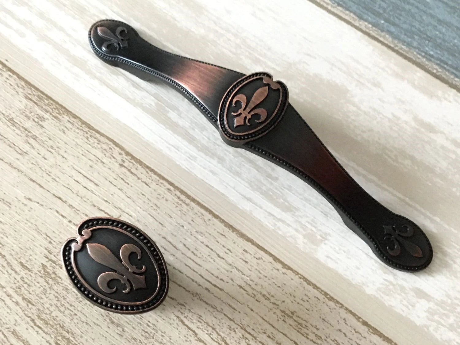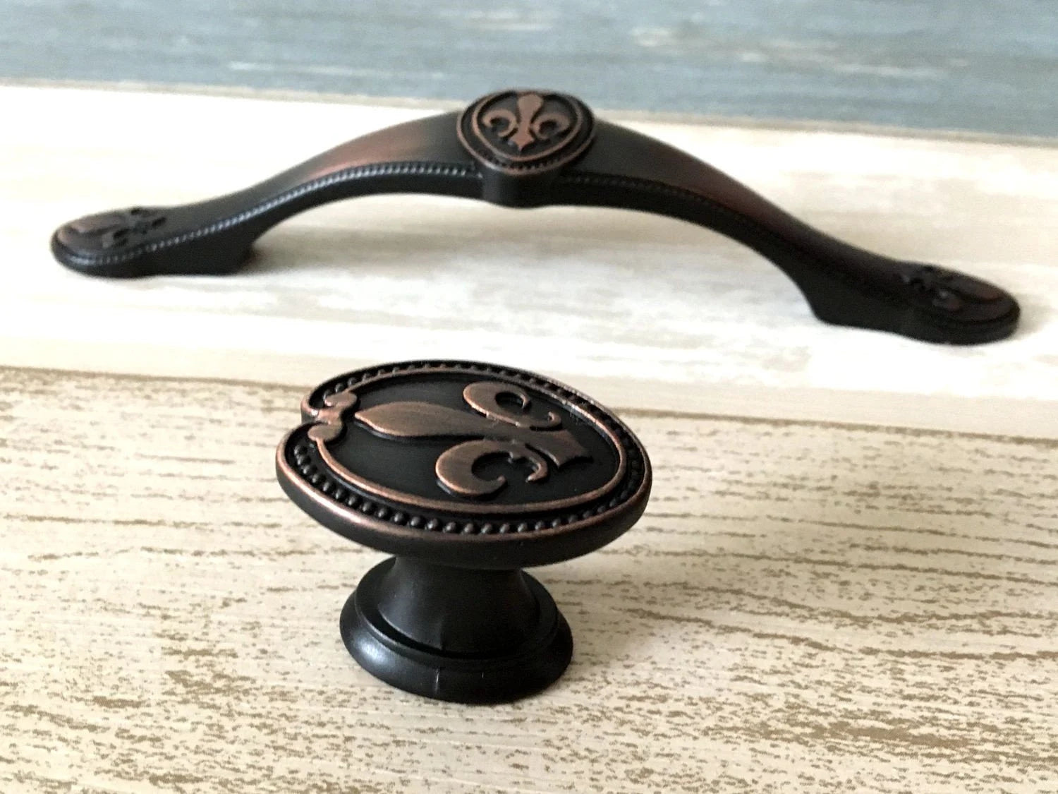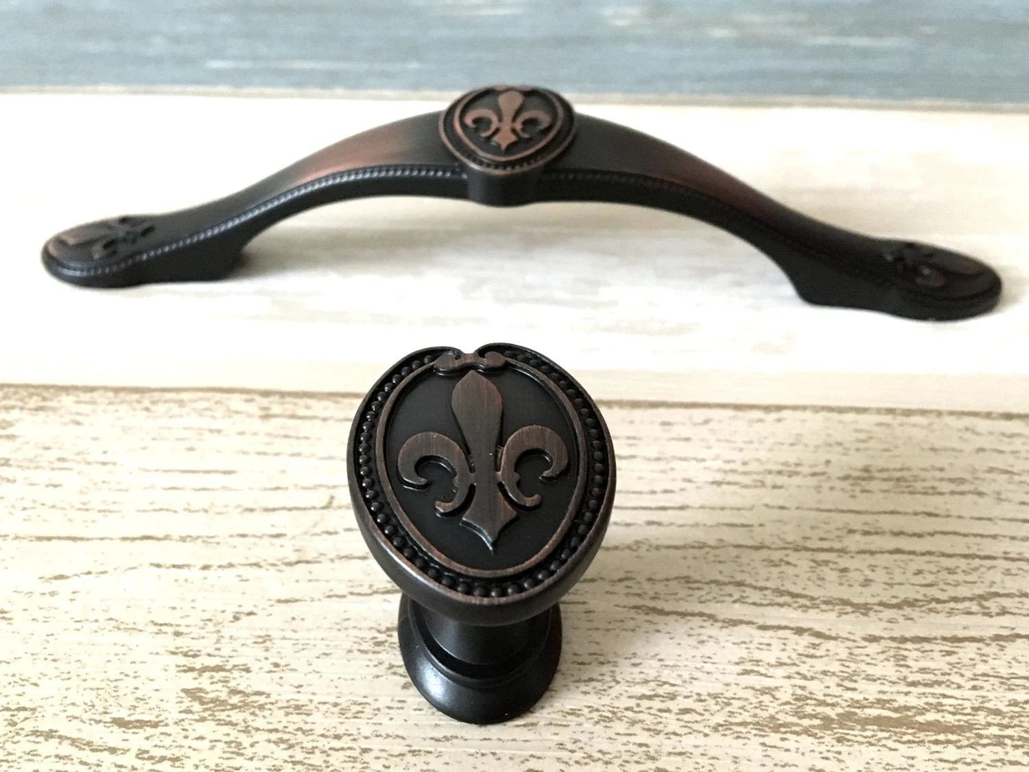 Oil Rubbed Bronze Cabinet Pulls Fleur De Lis Knob French Shabby Chic