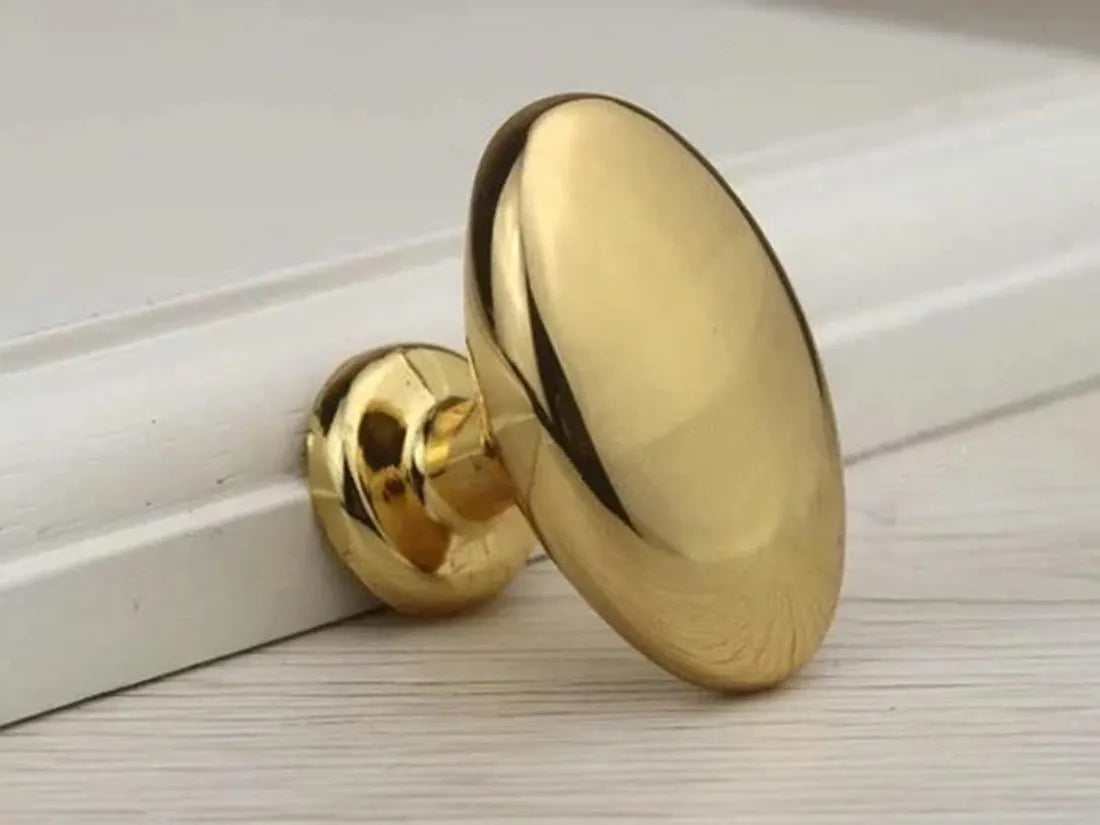 Oval Drawer Knob, Polished Gold Nickel Chrome Bronze, 1.3" Long
