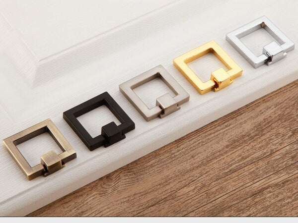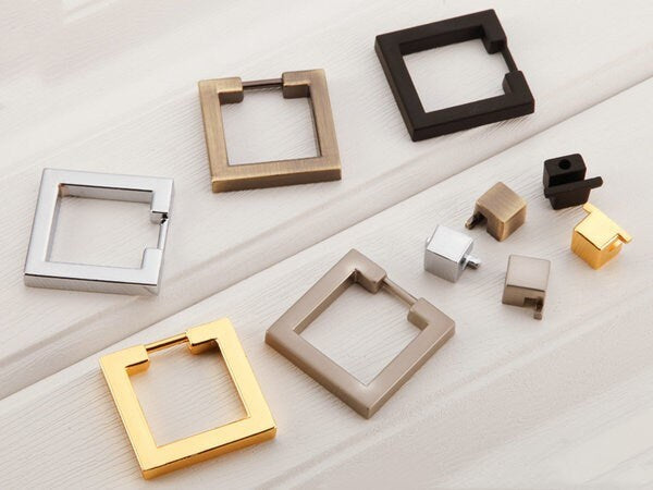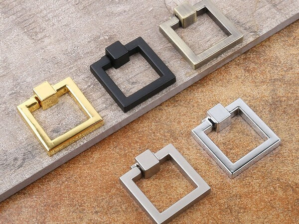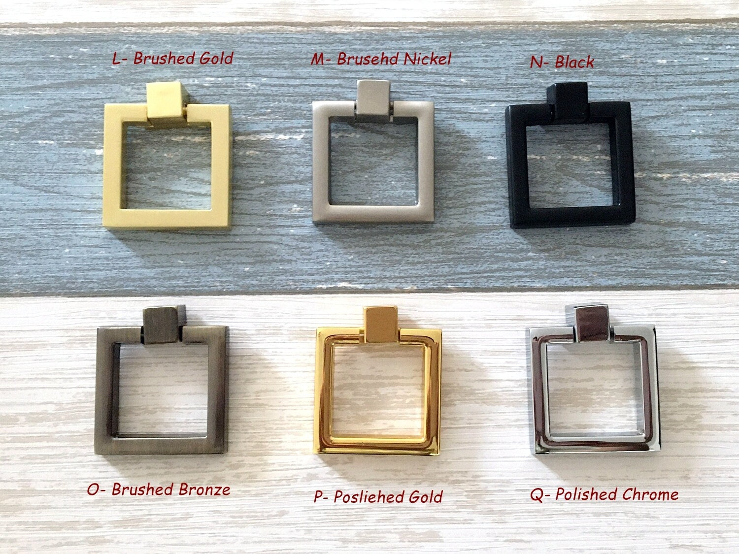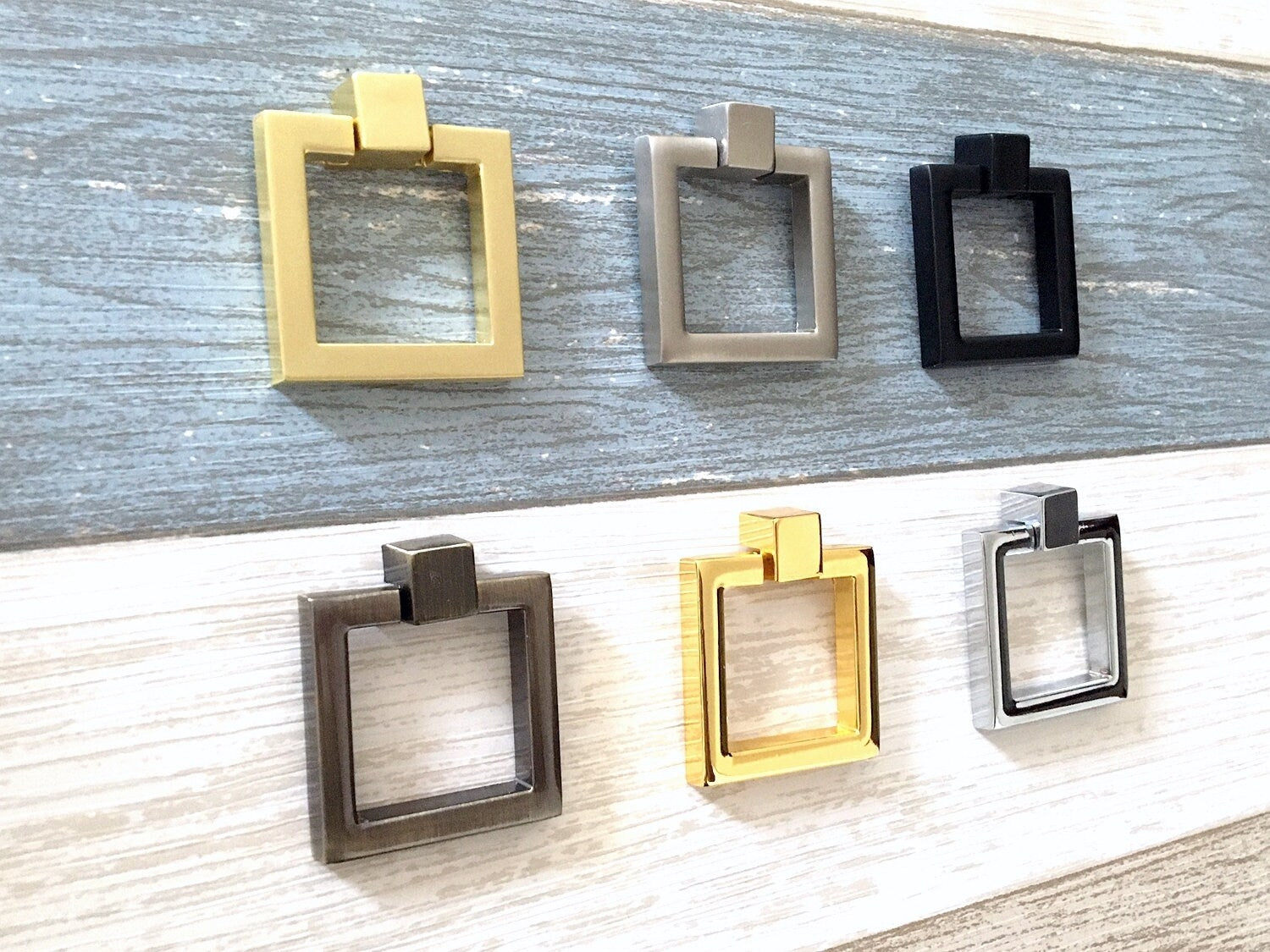 These round and square drop ring knob cabinet pulls are available in a variety of finishes including polished gold, brushed gold, antique bronze, antique pewter, matte black, brushed nickel, and oil-rubbed bronze. Designed with a solid build and modern style, they provide durable and versatile hardware options to complement diverse interior designs while ensuring reliable functionality.