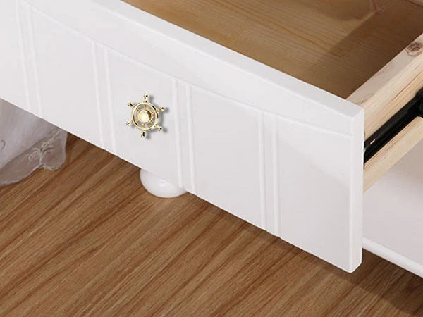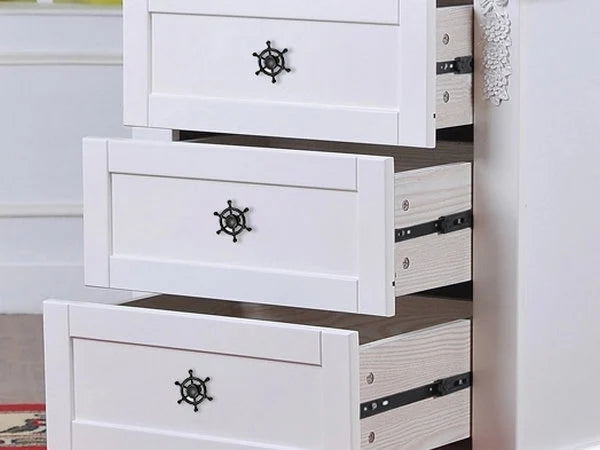 Enhance your cabinetry with these expertly crafted rudder knob drawer pulls, designed to bring a nautical touch to your kitchen or furniture. Available in Black, Gold, Antique Bronze and Chrome silver finishes, each knob features a spinning rudder design, combining functional hardware with maritime-inspired style.
