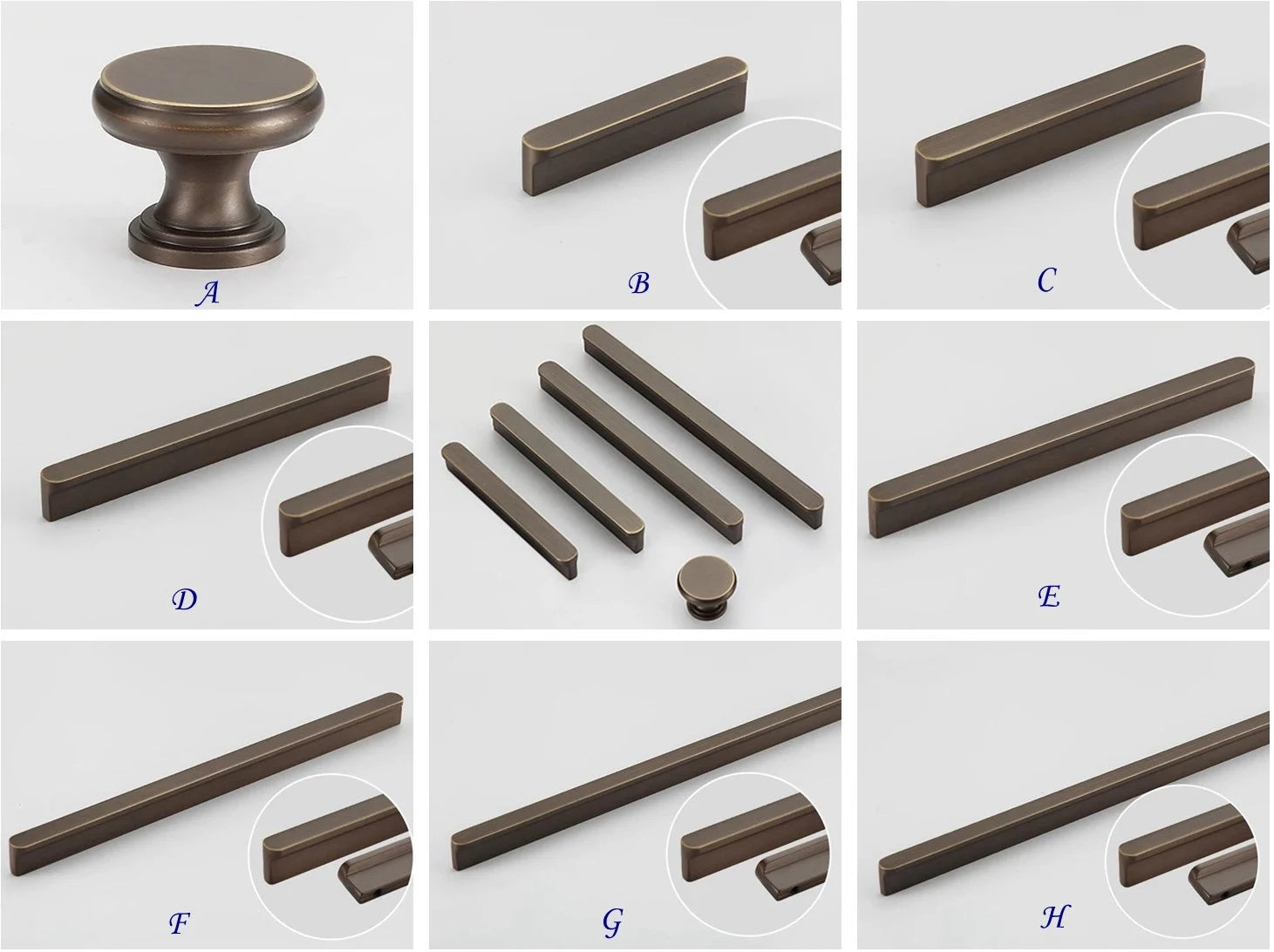 Solid Brass Cabinet Pulls, Simple Minimalism, Brushed Gold Brass, Matte Black, Coffee Bronze