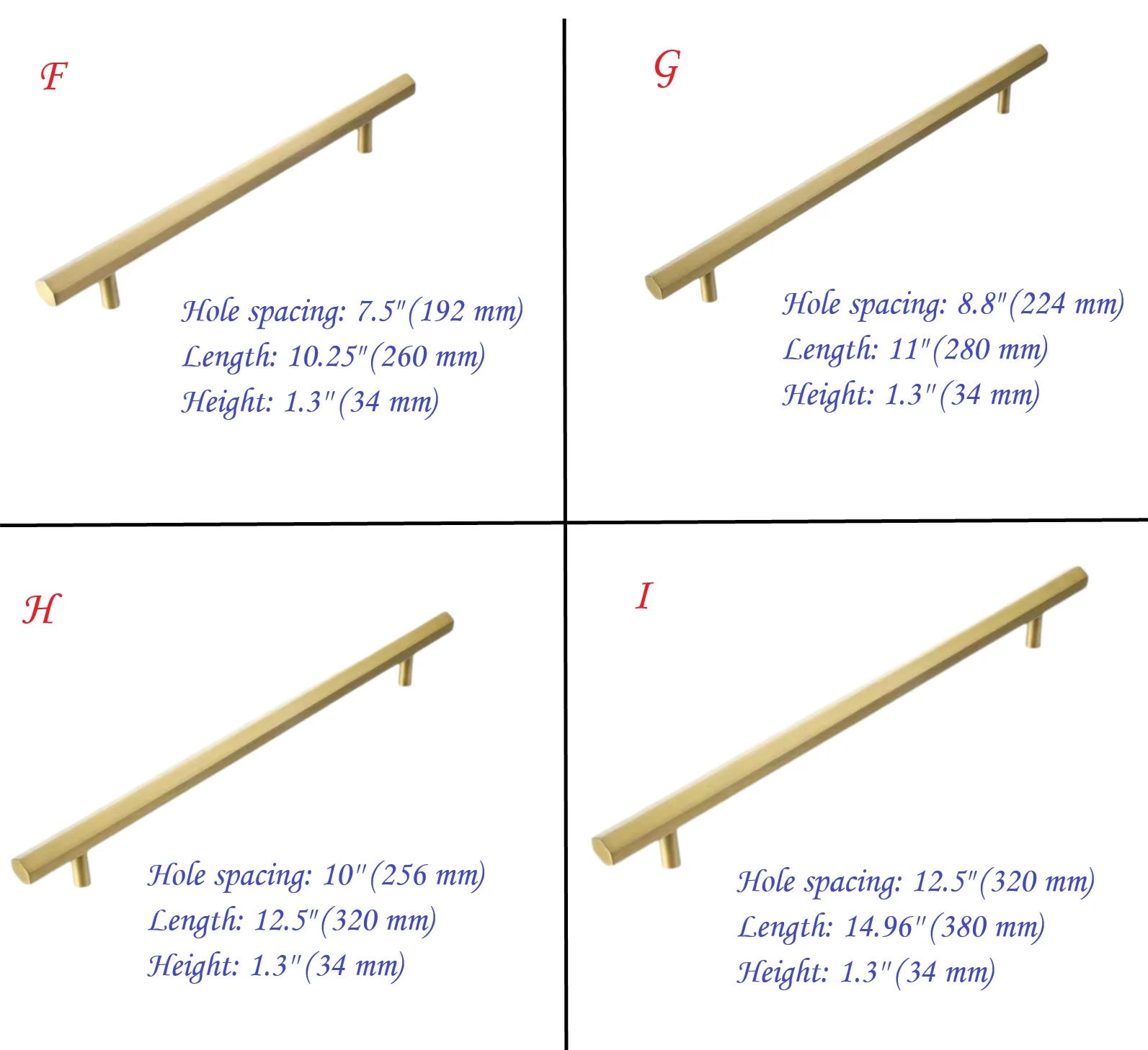 Solid Brass Hexagonal Cabinet Bar Handles, Geometric Kitchen Hardware