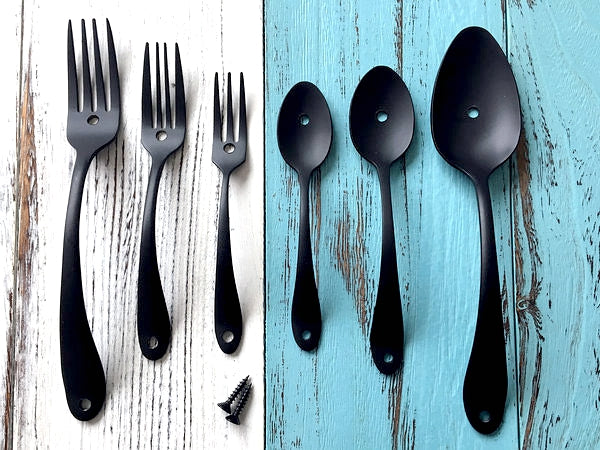 Spoon Fork Farmhouse Style Kitchen Cabinet Pulls, Antique Black