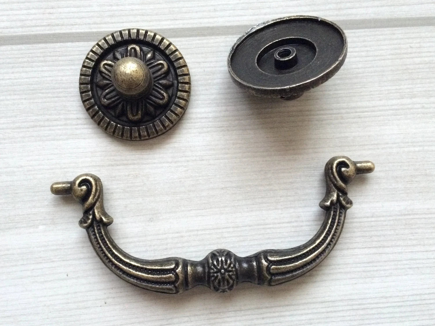 Vintage Look Drawer Pulls 3 inch Centers Antique Bronze Round Knob