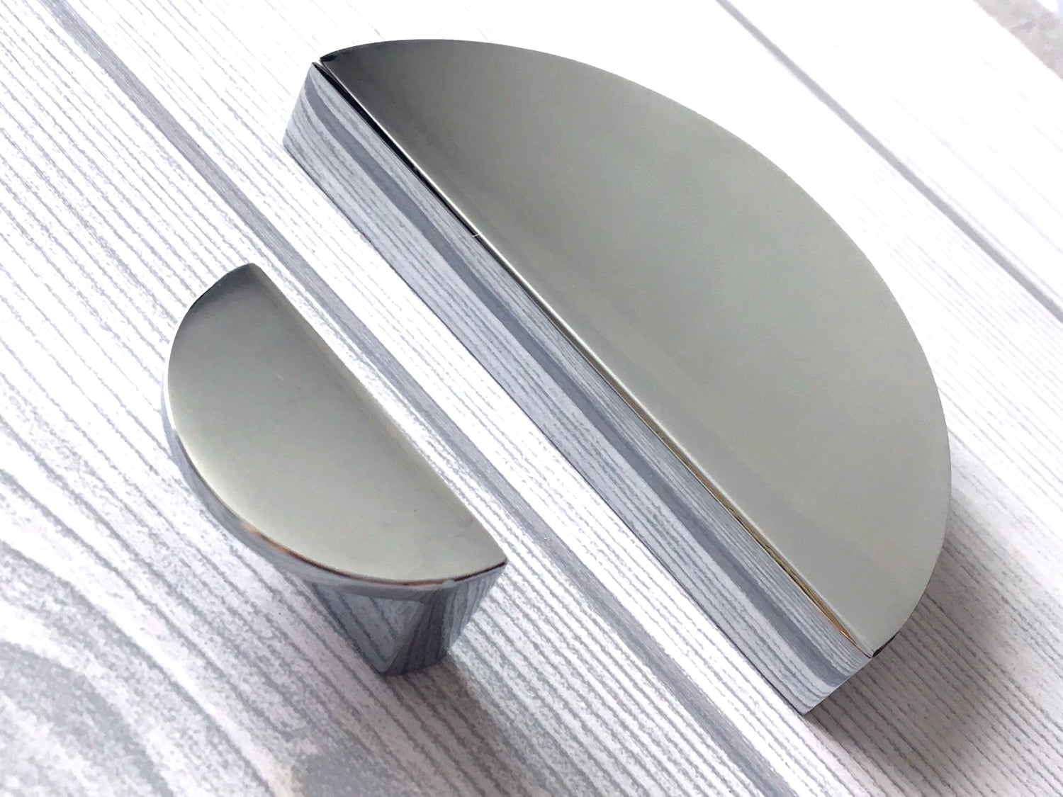 1.25" 2.5" Centers Half Circle Drawer Pulls, Polished Chrome Cabinet Handles