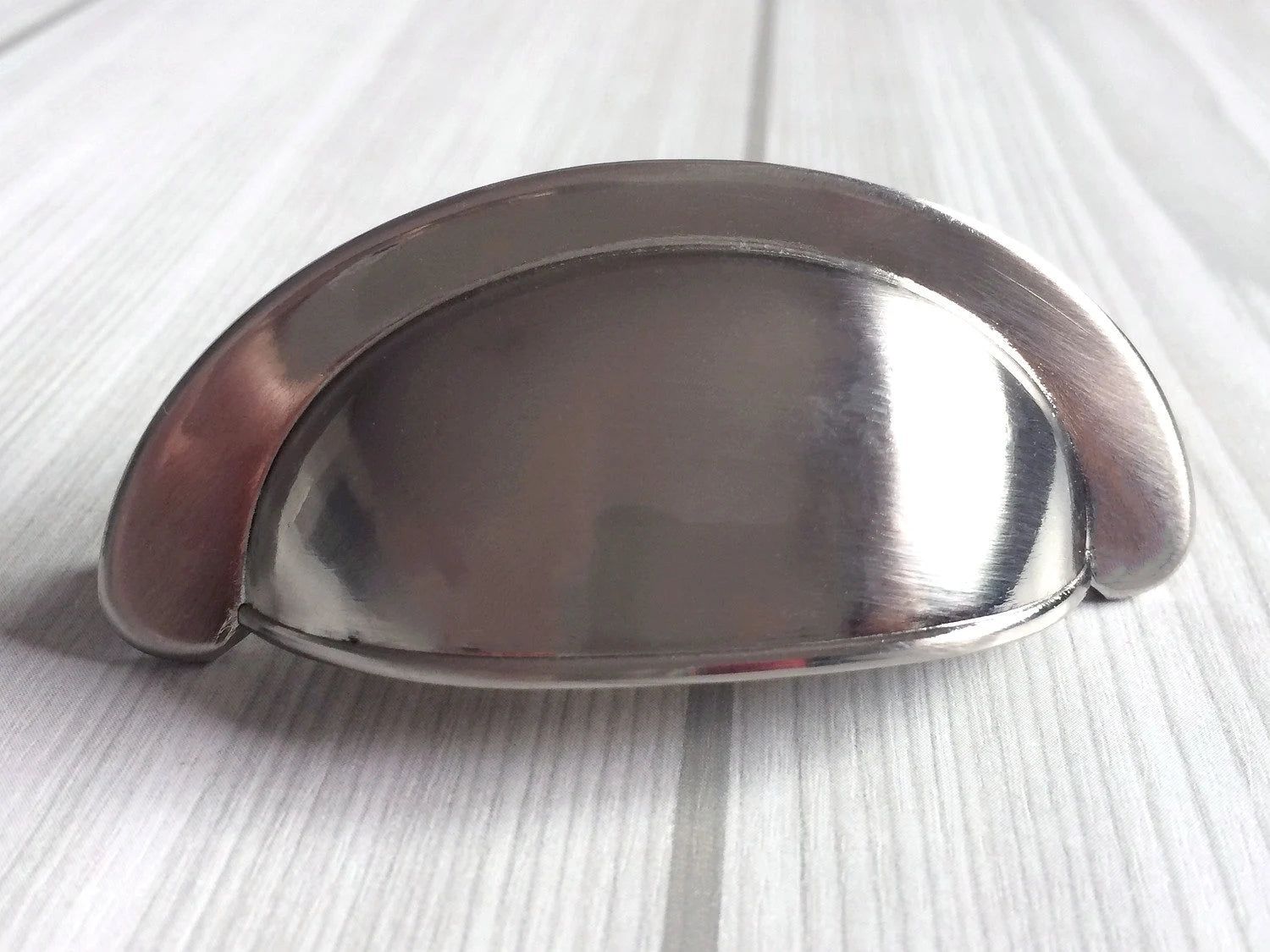 2-3/4" Brushed Nickel Cup Drawer Pull Cabinet Knob 2.75 Inch 70 mm Centers