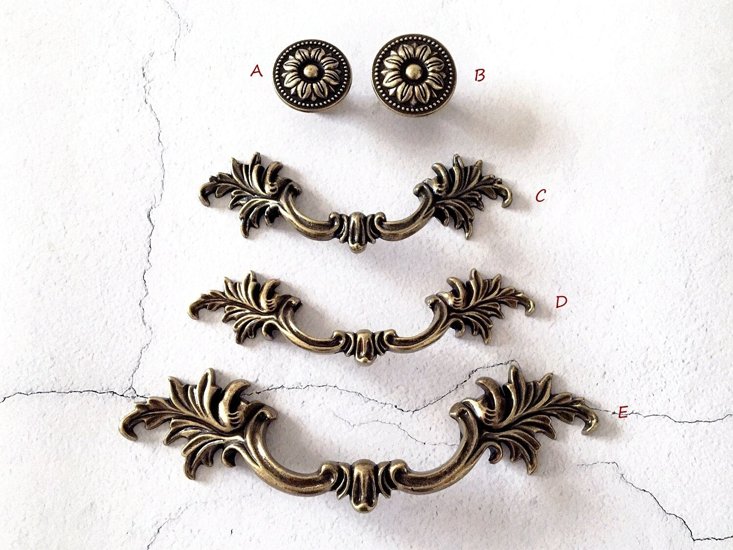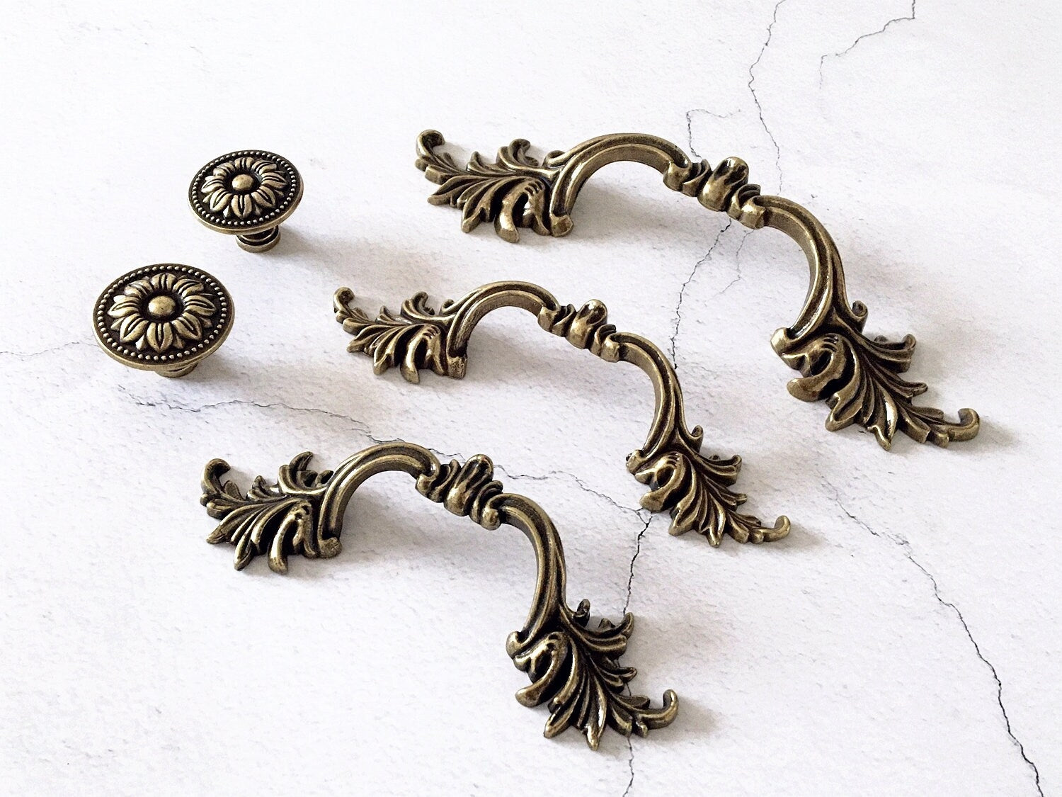2.5" 3" 3.75" Antique Bronze Leafy Drawer Pulls, French Provincial Cabinet Hardware