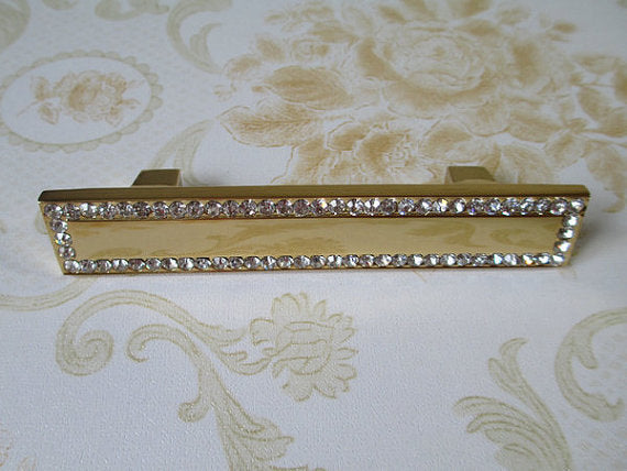 2.5" 3.75" Gold Crystal Drawer Pull, Square Glass Cabinet Knob, Kitchen Hardware 64 96 mm