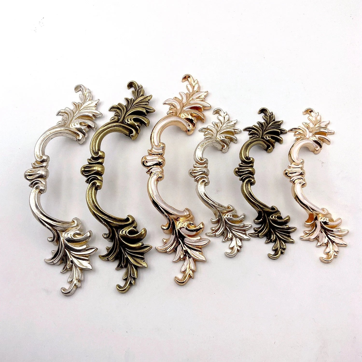 2.5" 3.75" Leafy Drawer Pull Handles, Antique Silver Bronze White Rose Gold, French Provincial Hardware 64 96 mm