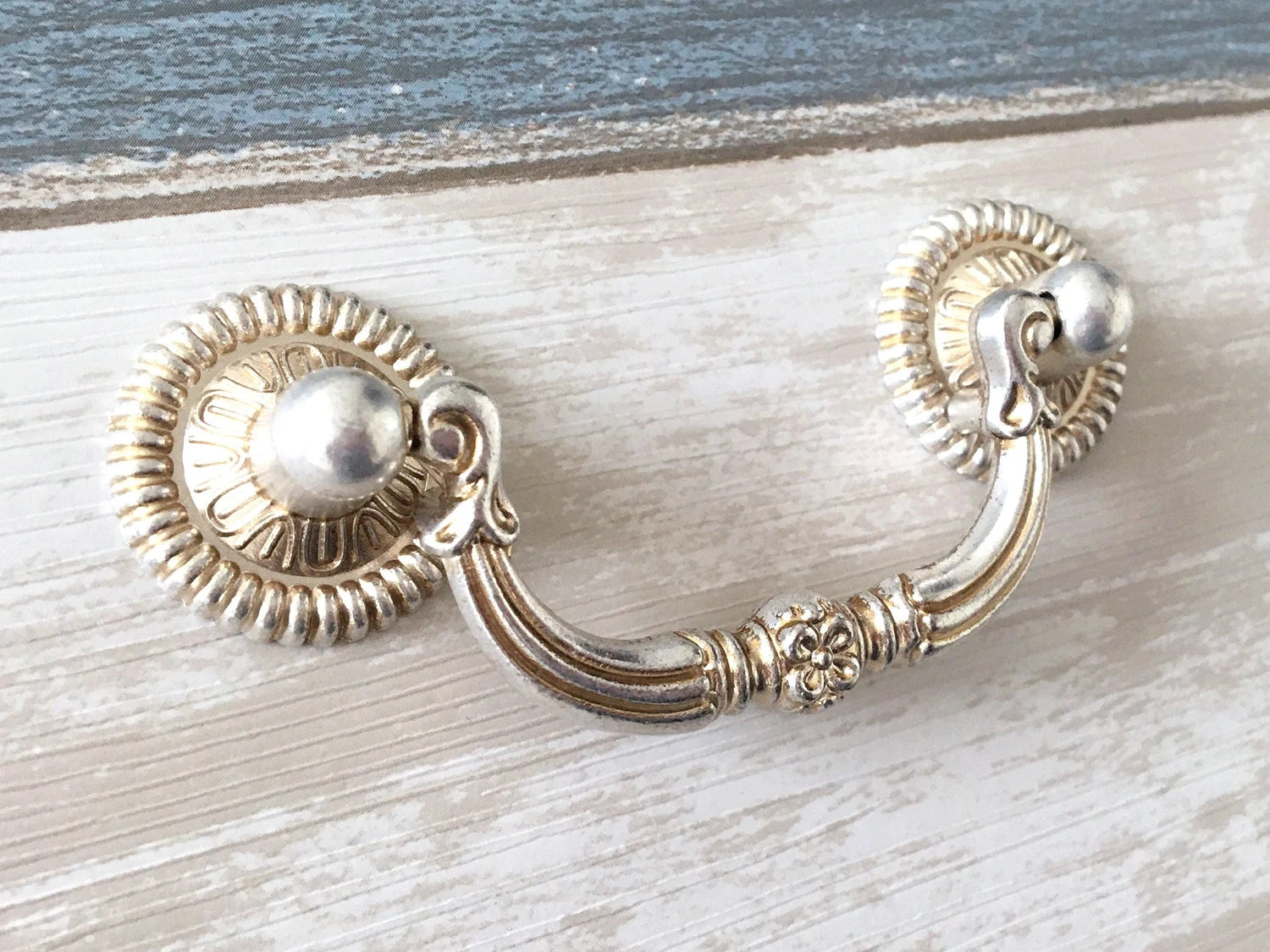 These 2.5" drawer pulls feature a classic bail drop handle design in an antique silver finish, offering both durability and timeless style. With 64 mm center-to-center mounting, they provide a precise fit for standard drawers, enhancing furniture with a refined, vintage look. Ideal for restoring or upgrading cabinets, these handles combine functionality with elegant craftsmanship.