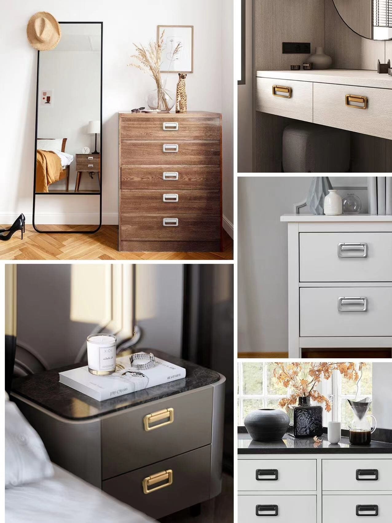 2.5" Holes Square Flat Bail Drawer Pulls Invisible, Gray Nickel Gold White Black, 64 mm Centers