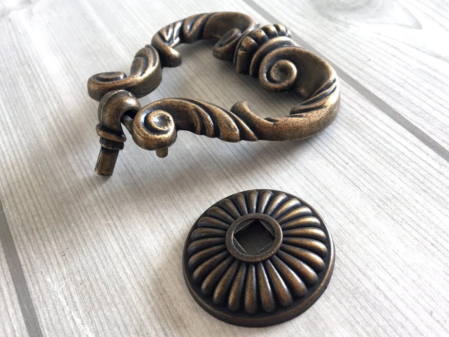 2.75" Wide Large Cabinet Drop Pull, Vintage Style Ring Drawer Knob, Antique Brass