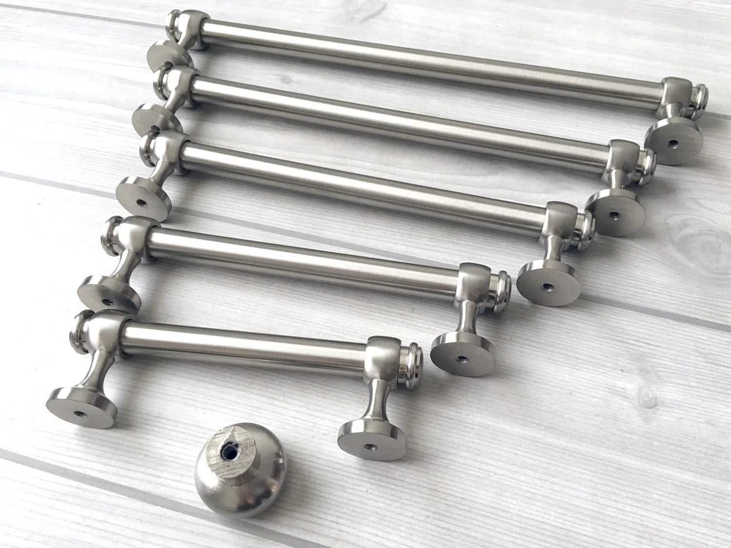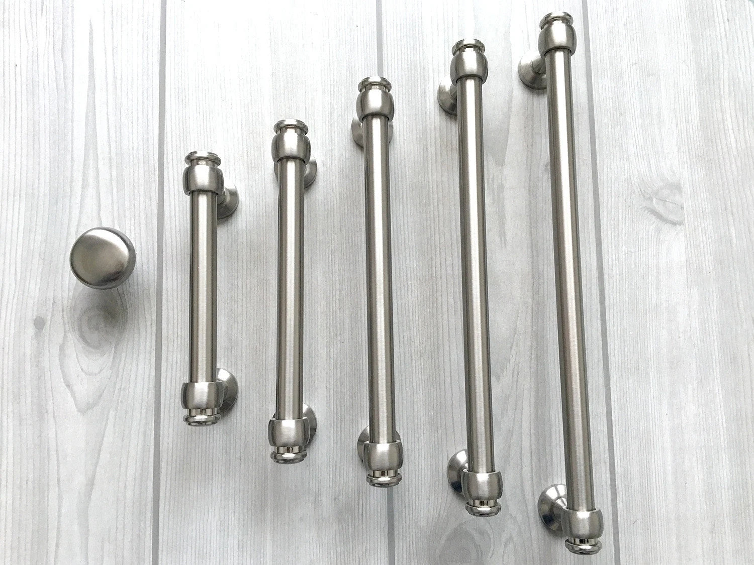 These cabinet handles feature from 3" to 12.5" center-to-center measurements, fitting standard drawer and cabinet configurations. Crafted in brushed nickel, they offer a sleek, modern finish that resists wear and fingerprints.