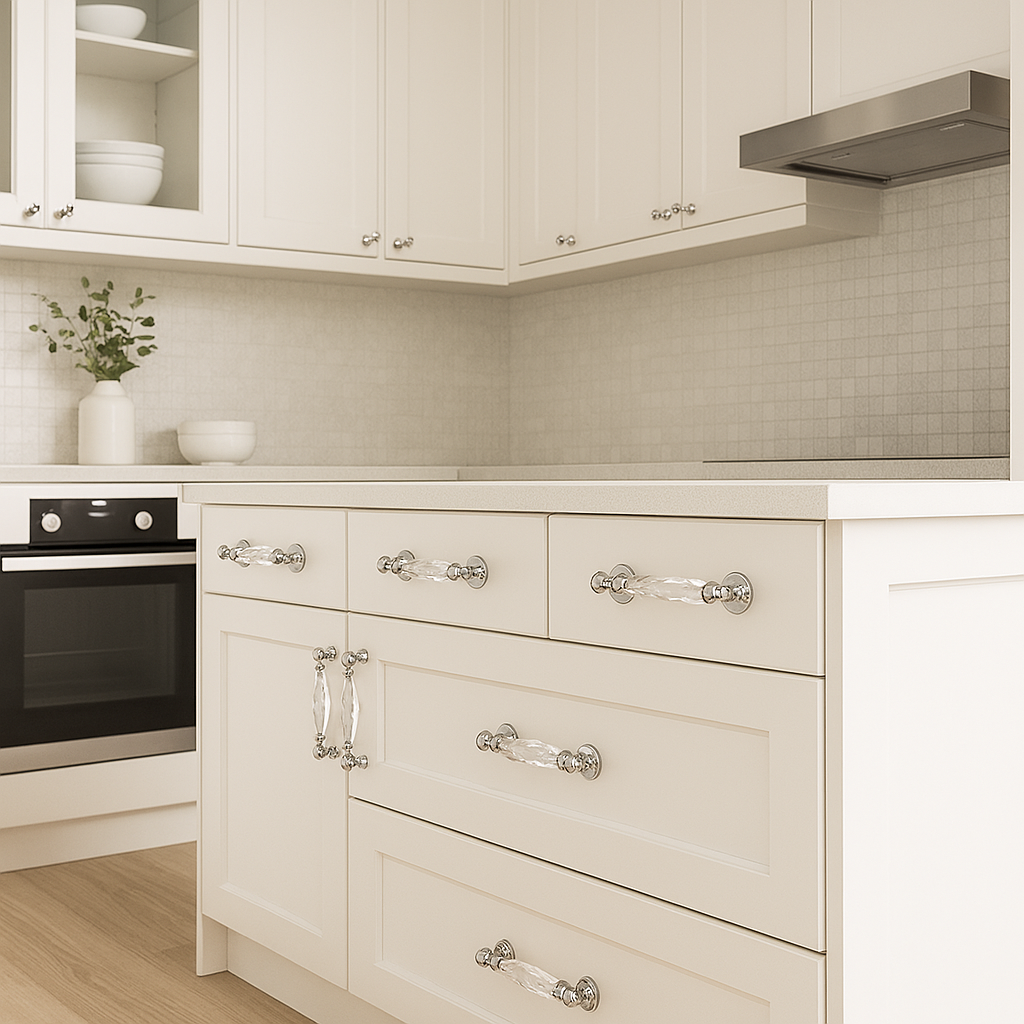 Enhance your cabinetry with these crystal drawer pulls featuring sparkling rhinestone accents set in polished chrome and polished gold. Available in 3.75" and 5" center-to-center sizes, they provide a precise fit for a variety of drawers and cabinets. The sleek chrome finish combines durability with a modern aesthetic, while the crystal detailing adds a refined touch.