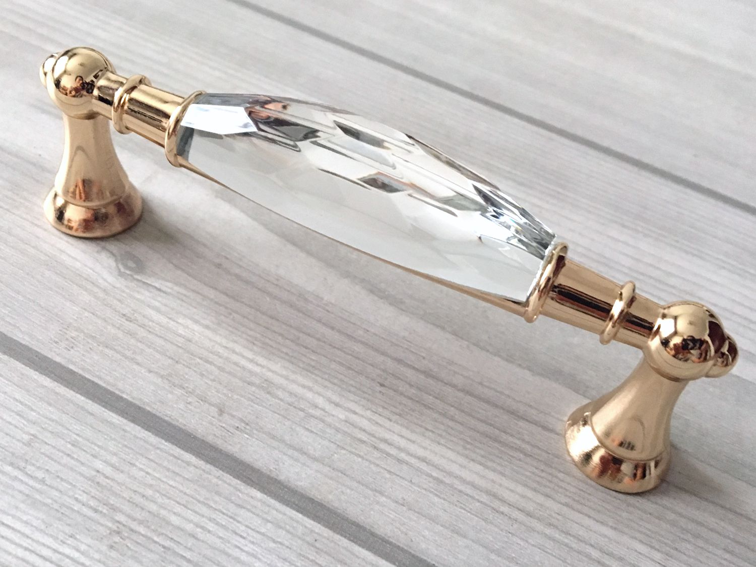 3.75" 5" Crystal Drawer Pull, Glass Cabinet Pulls, Gold Silver Modern Hardware