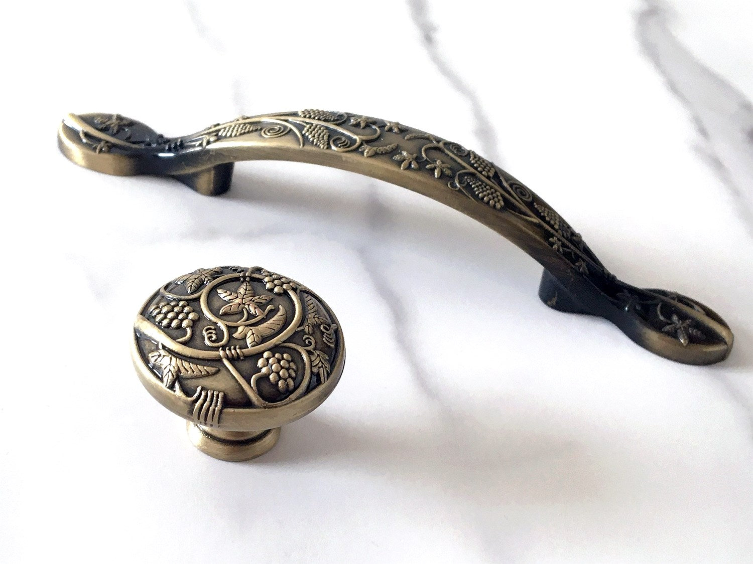 3" 76 mm Georgian Antique Bronze Drawer Pull, Flower Patterned Cabinet Knob