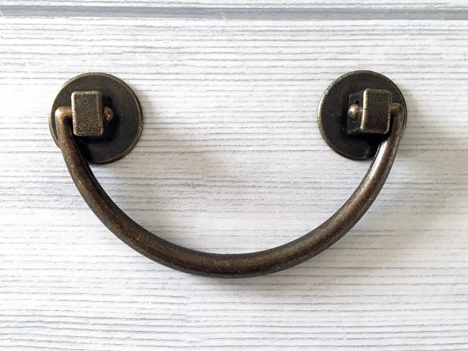These 3" drawer pull bail drop handles feature a refined antique bronze finish and 76 mm center spacing, ideal for enhancing antique furniture. Their slim, elegant design offers a subtle yet sophisticated touch, combining durability with classic style to complement traditional interiors seamlessly. Perfect for restoring or upgrading drawers with a timeless appeal.