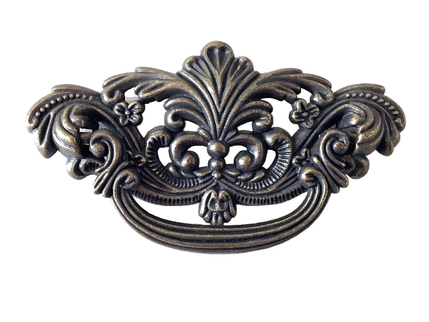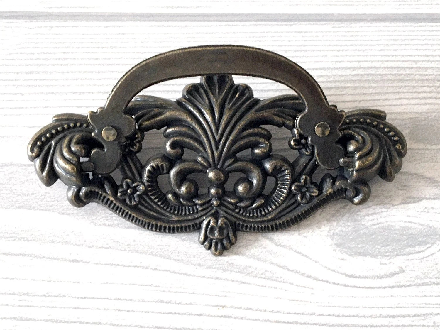 These 3" drop bail pull handles feature a vintage style with an antique bronze finish, designed to add character to your furniture. With a sturdy backplate and 76 mm center-to-center mounting, they ensure secure attachment and easy installation.