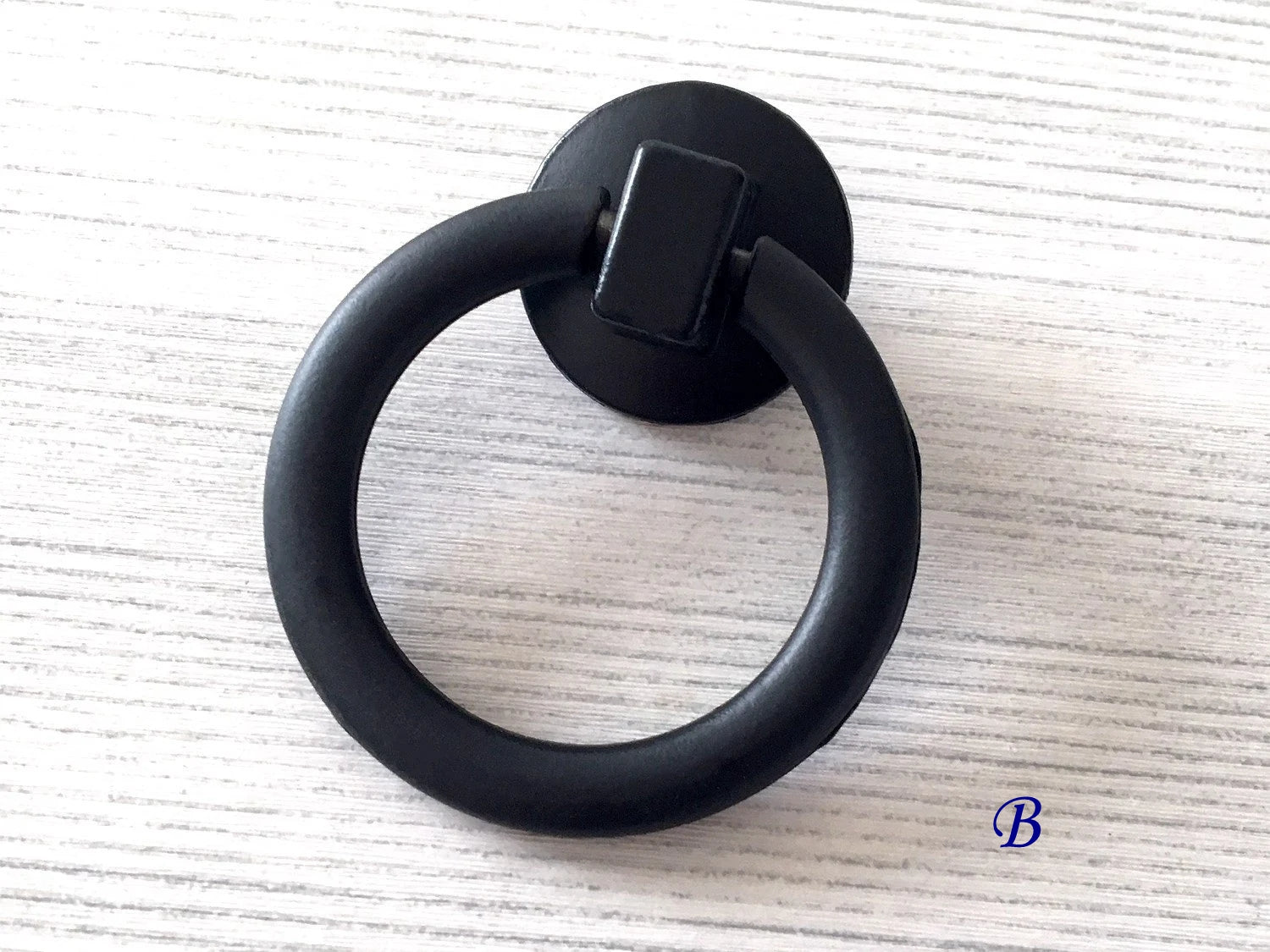 4.5" Black Bail Drawer Pull Handles, Round Knob and Drop Ring
