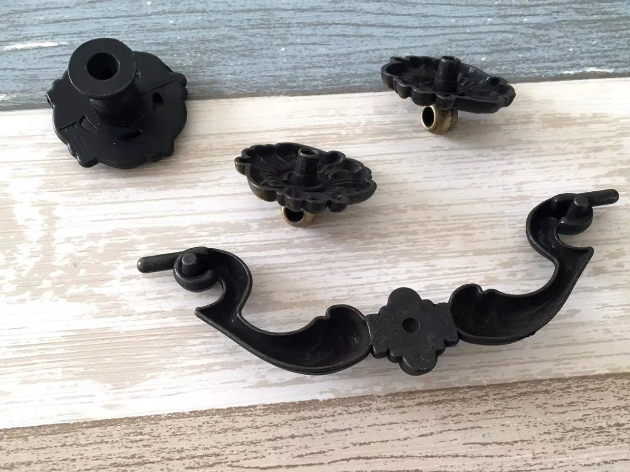4.5" Vintage Style Antique Gold Brass Drop Bail Drawer Pull and Cabinet Knob