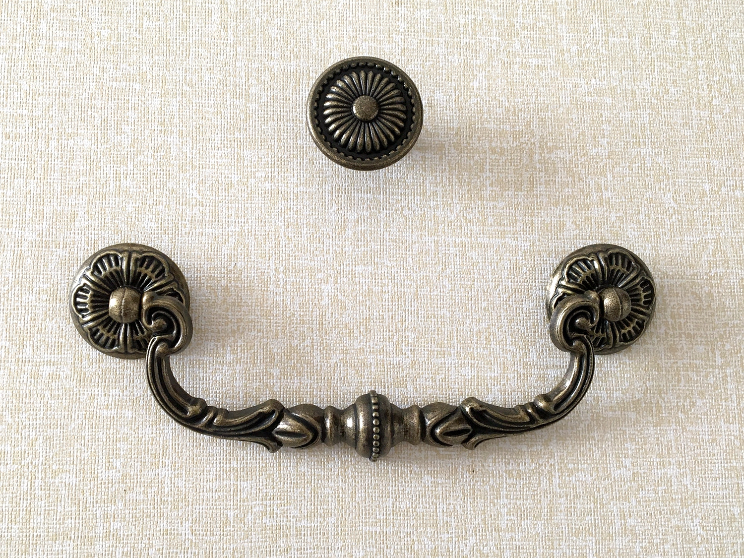 5.25“ Vintage Style Swing Bail Drawer Pull, Round Knob, Antique Bronze