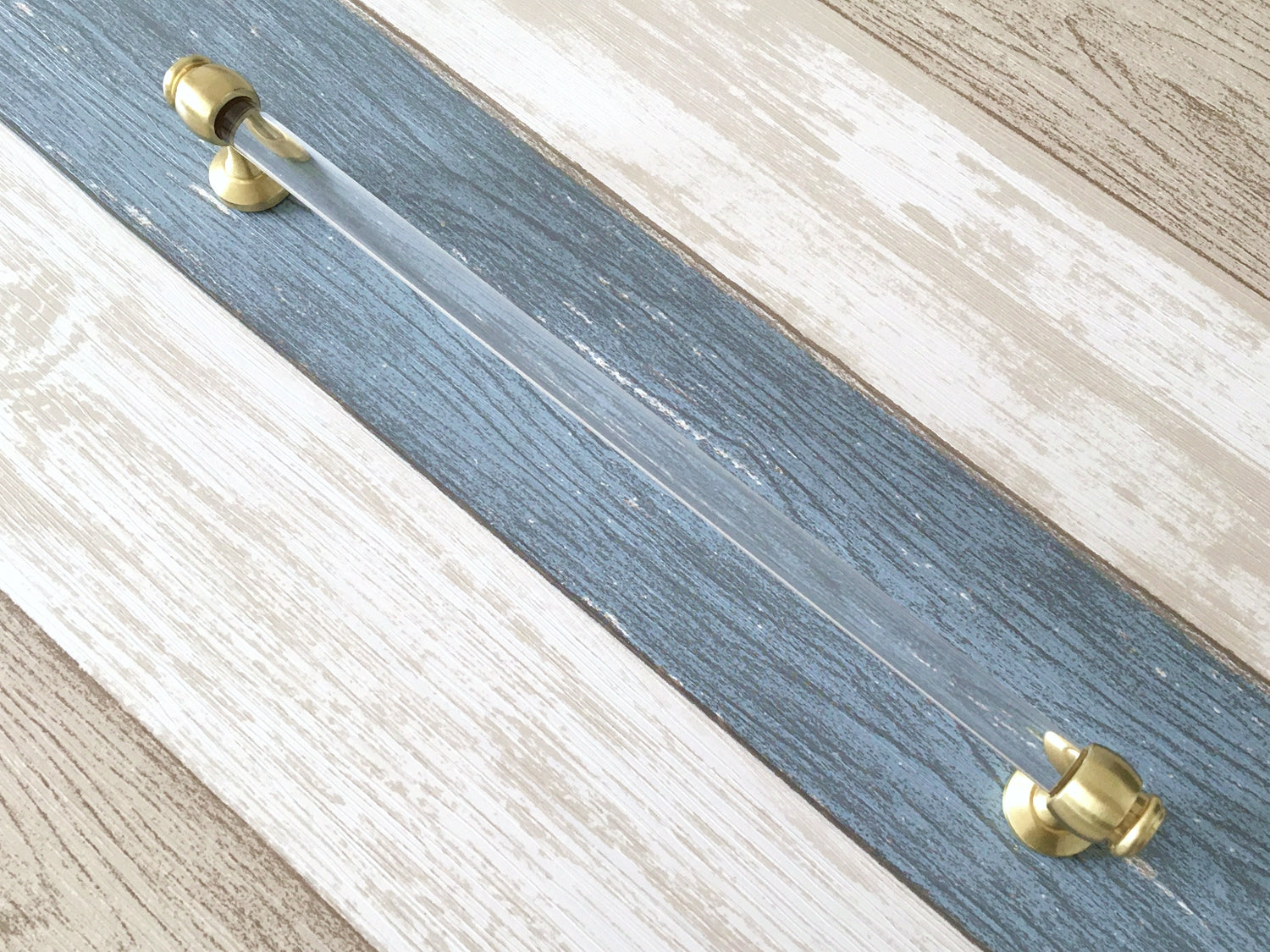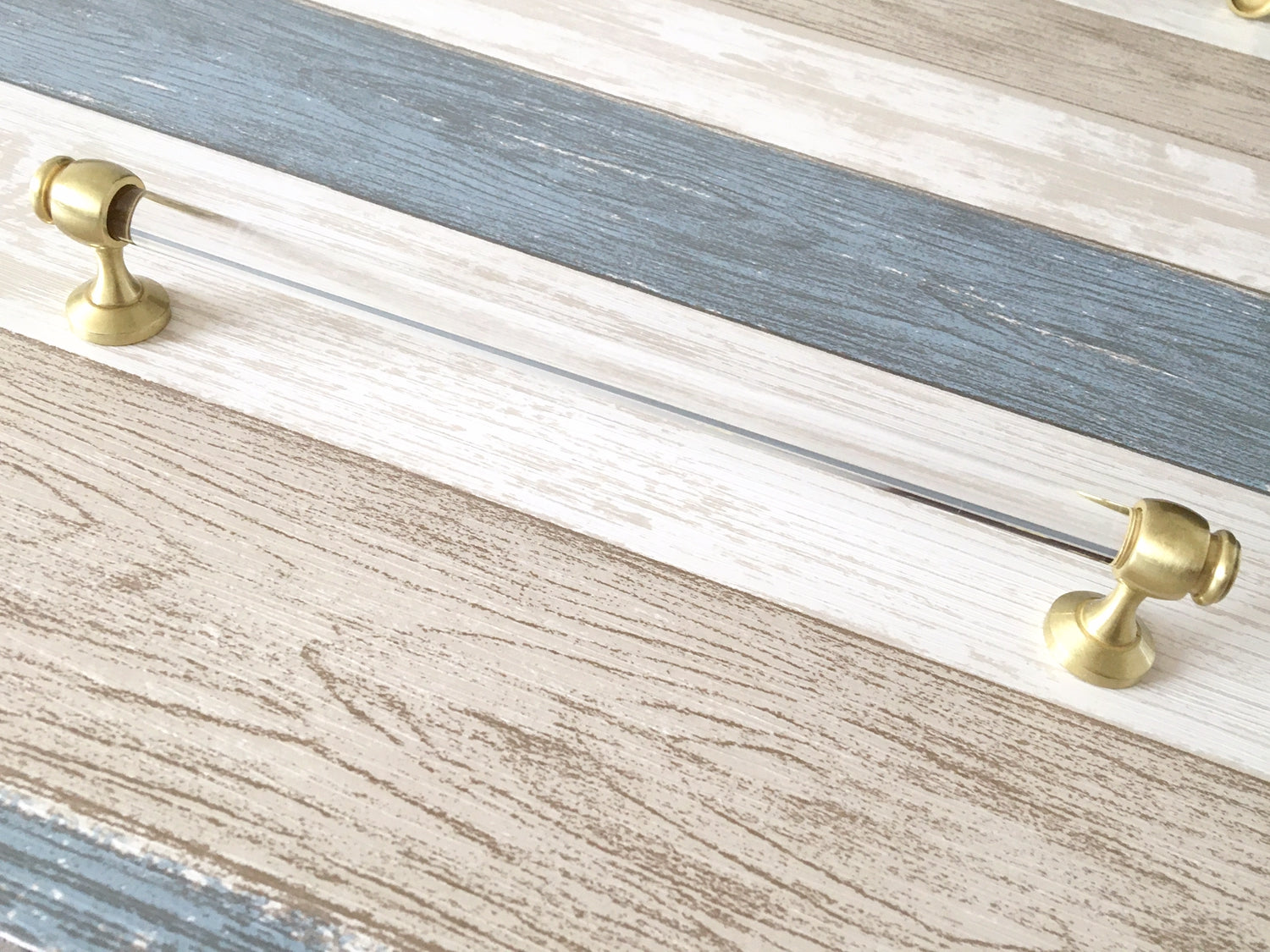 Acrylic Drawer Pulls, Lucite Cabinet Handles, Brushed Gold Clear, Kitchen Hardware