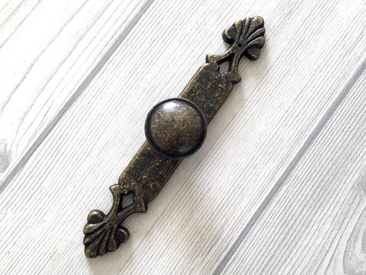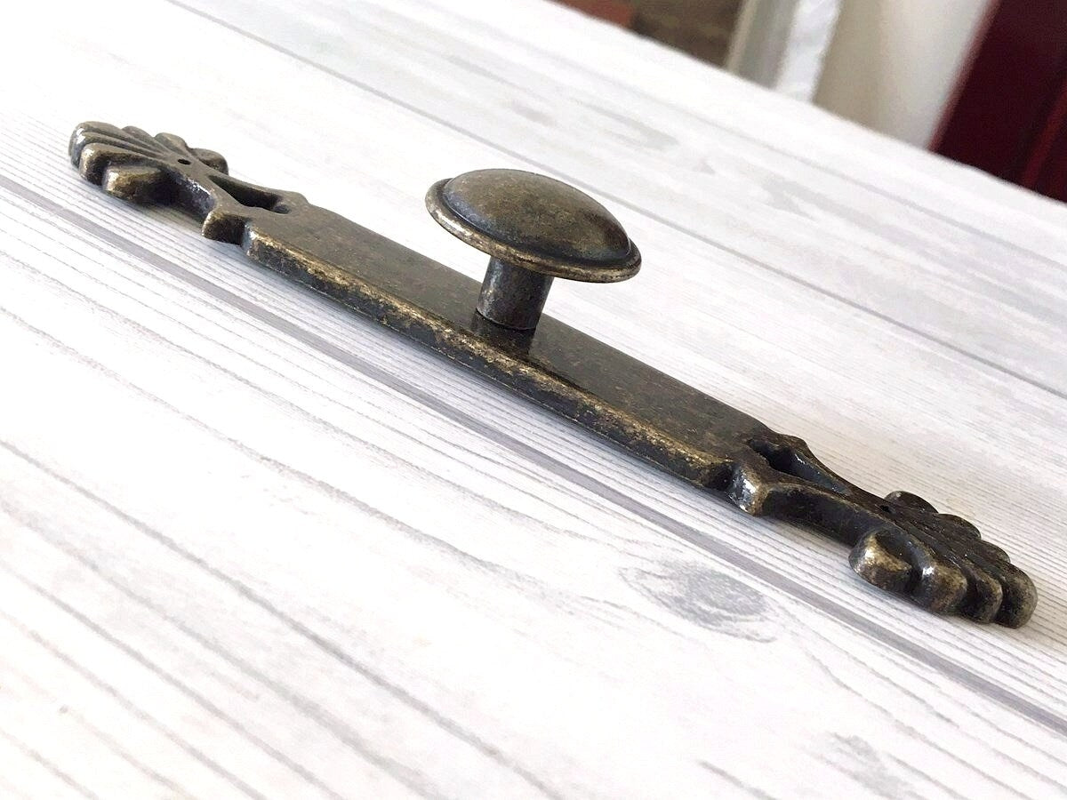 This cabinet knob features a distinctive backplate finished in antique bronze tones, combining retro charm with modern shabby chic style. Designed for durability and aesthetic appeal, it enhances cabinetry with a sophisticated vintage look while providing a comfortable grip for everyday use.
