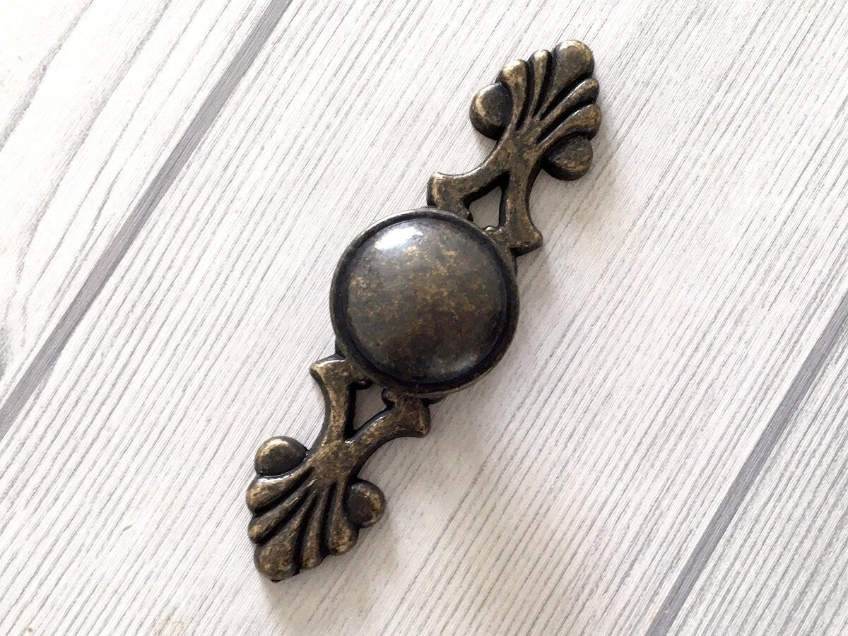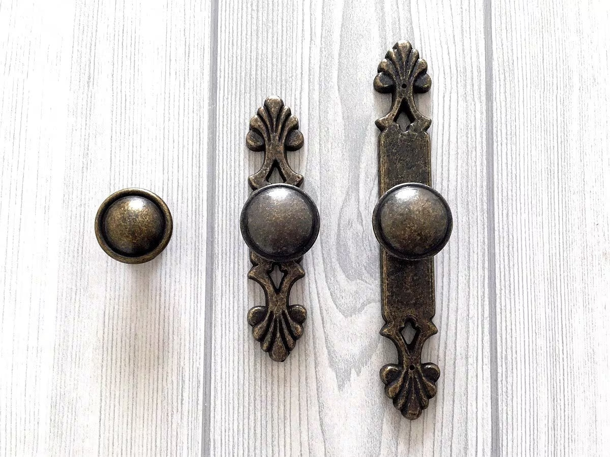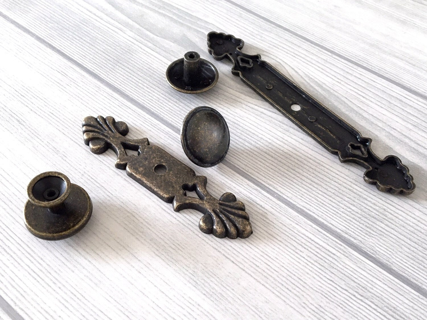 Antique Bronze Cabinet Knob with Back Plate, Retro Rustic MCM Kitchen Hardware