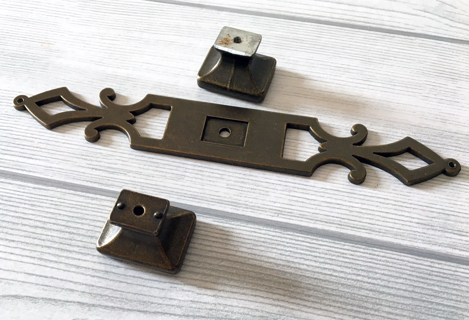 Antique Bronze Rectangular Drawer Pull, Georgian Style Cabinet Knob with Backplate