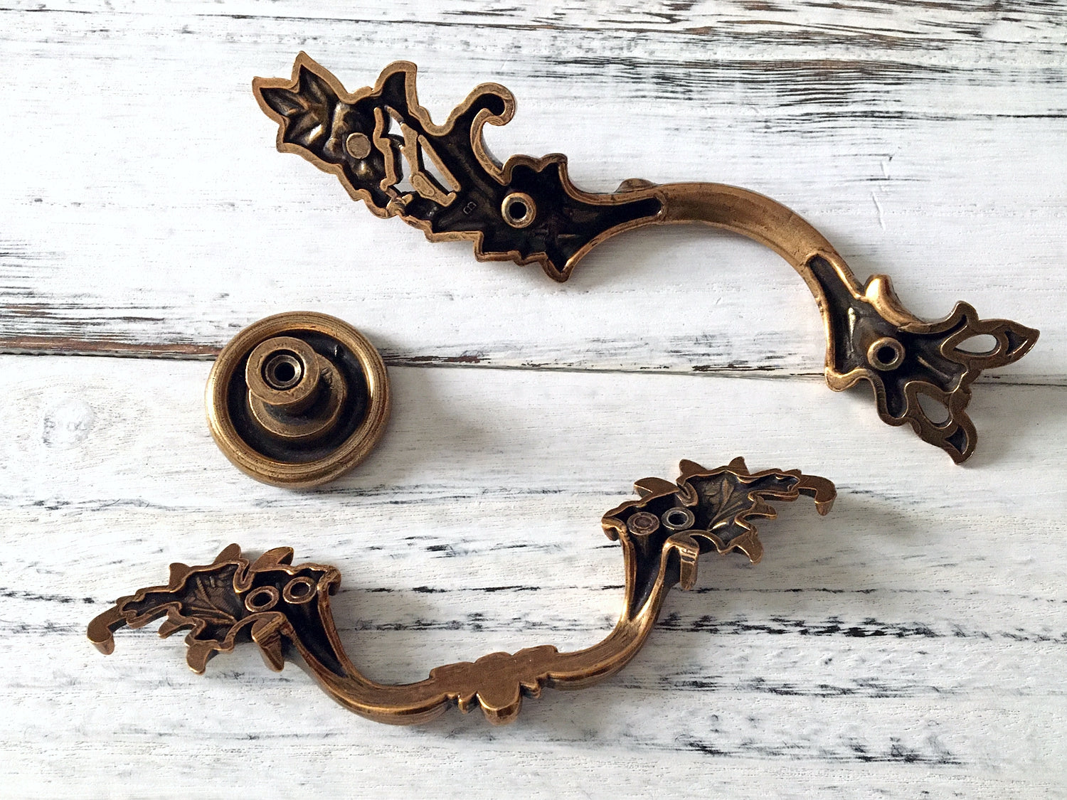 Antique Gold Brass Cabinet Door Handle, Leafy Drawer Pulls, French Provincial Vertical Hardware