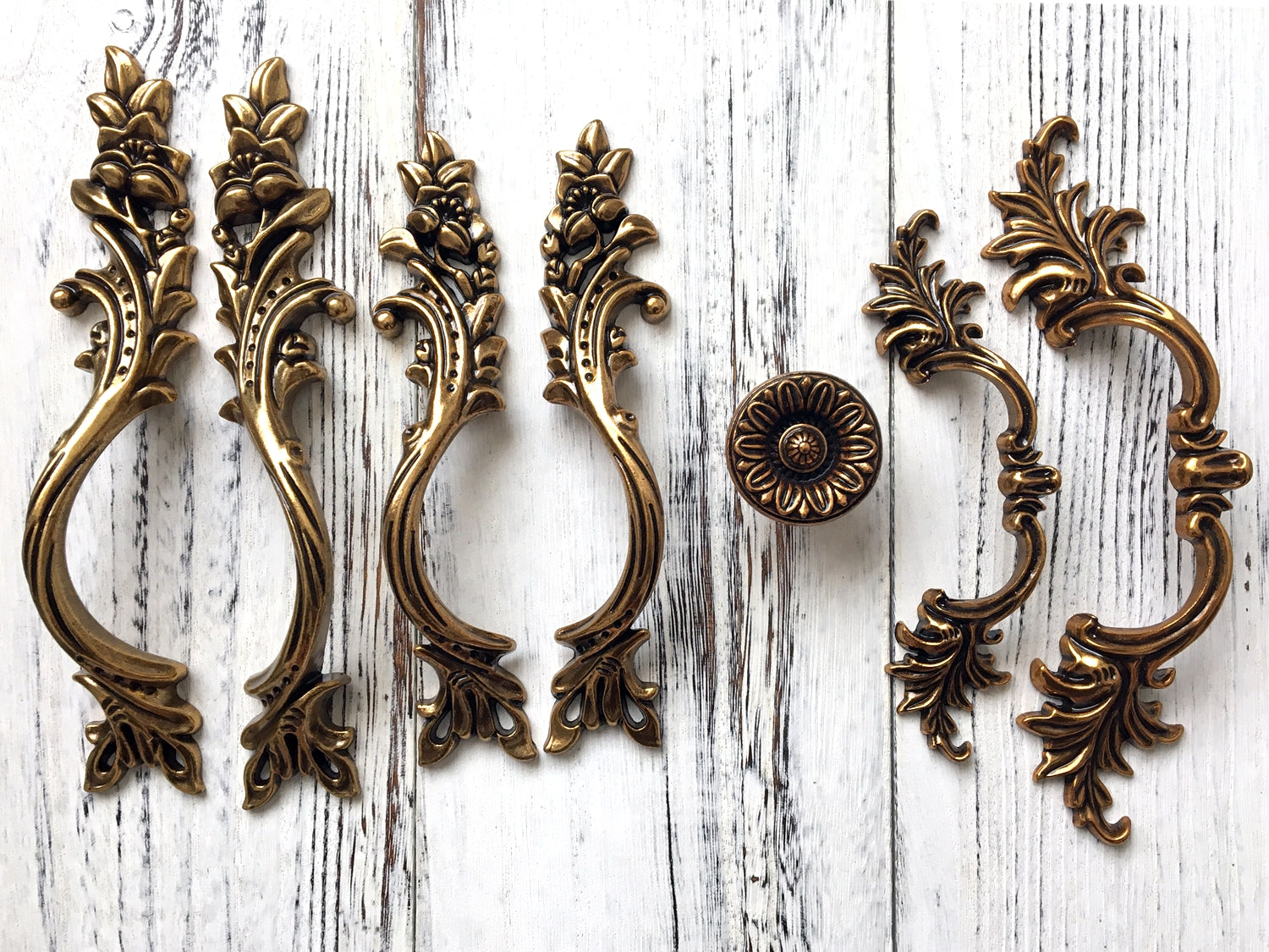 Elevate your furniture with these antique gold brass leafy drawer pulls. Crafted for both vintage and shabby chic styles, they provide a sturdy grip while adding elegant detail to drawers and cabinets. These pulls combine aesthetic charm with practical durability, making them an expert choice for restoring or enhancing classic home interiors.