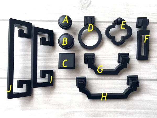 Elevate your cabinetry with our versatile hardware collection featuring four distinct styles to suit any interior aesthetic. Choose from the refined Greek Key Cabinet Pull with its geometric detailing, the minimalist Drop Ring Pull for contemporary spaces, the sleek Circle Knob for understated elegance, or the streamlined Matte Drawer Handle for modern kitchens and bathrooms.