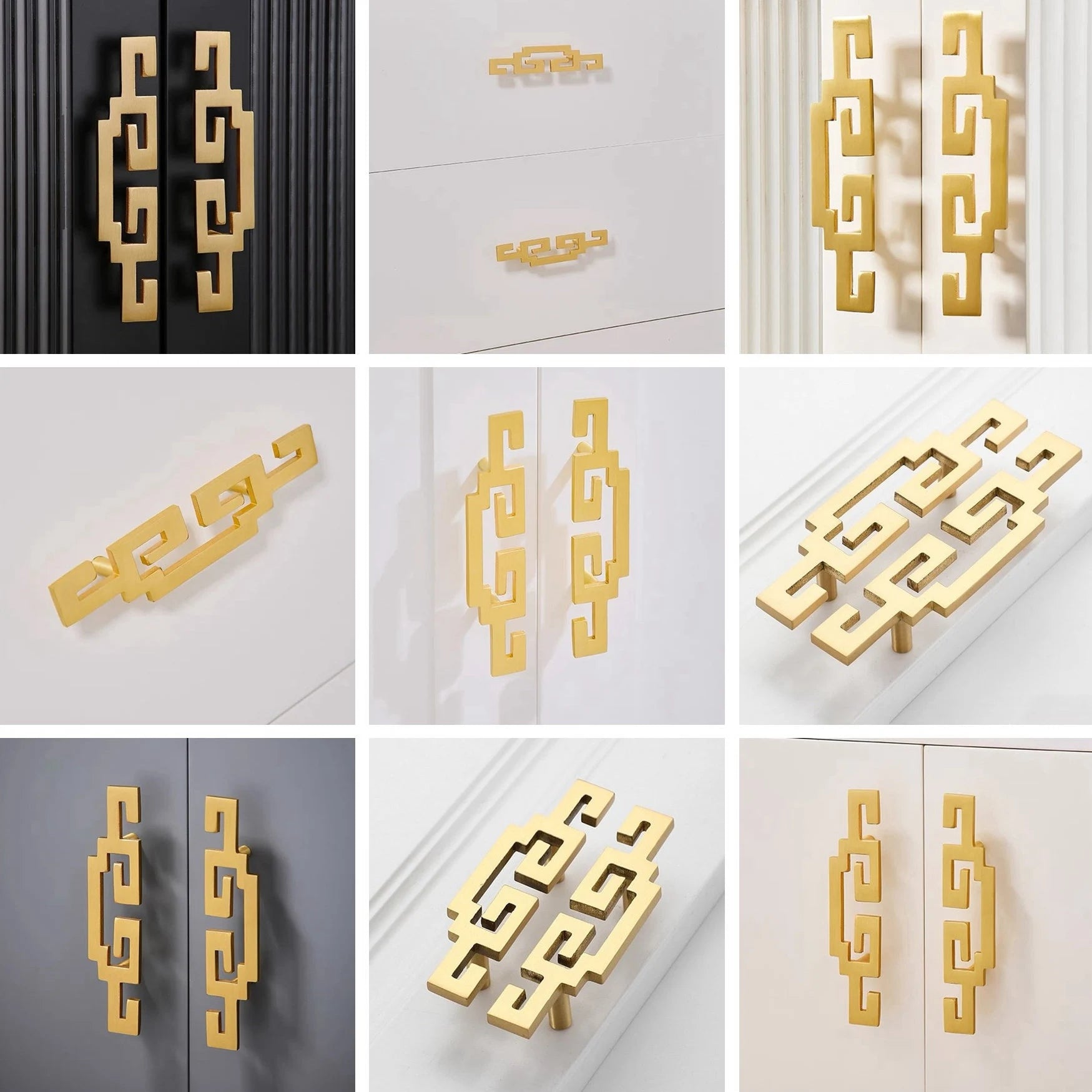 Elevate your furniture with these authentic brass dresser drawer pulls featuring a distinctive Greek Key and Oriental Chinese design. Available in two versatile sizes—2" (50 mm) and 2.75" (70 mm) centers—these handles deliver both aesthetic appeal and functional durability.