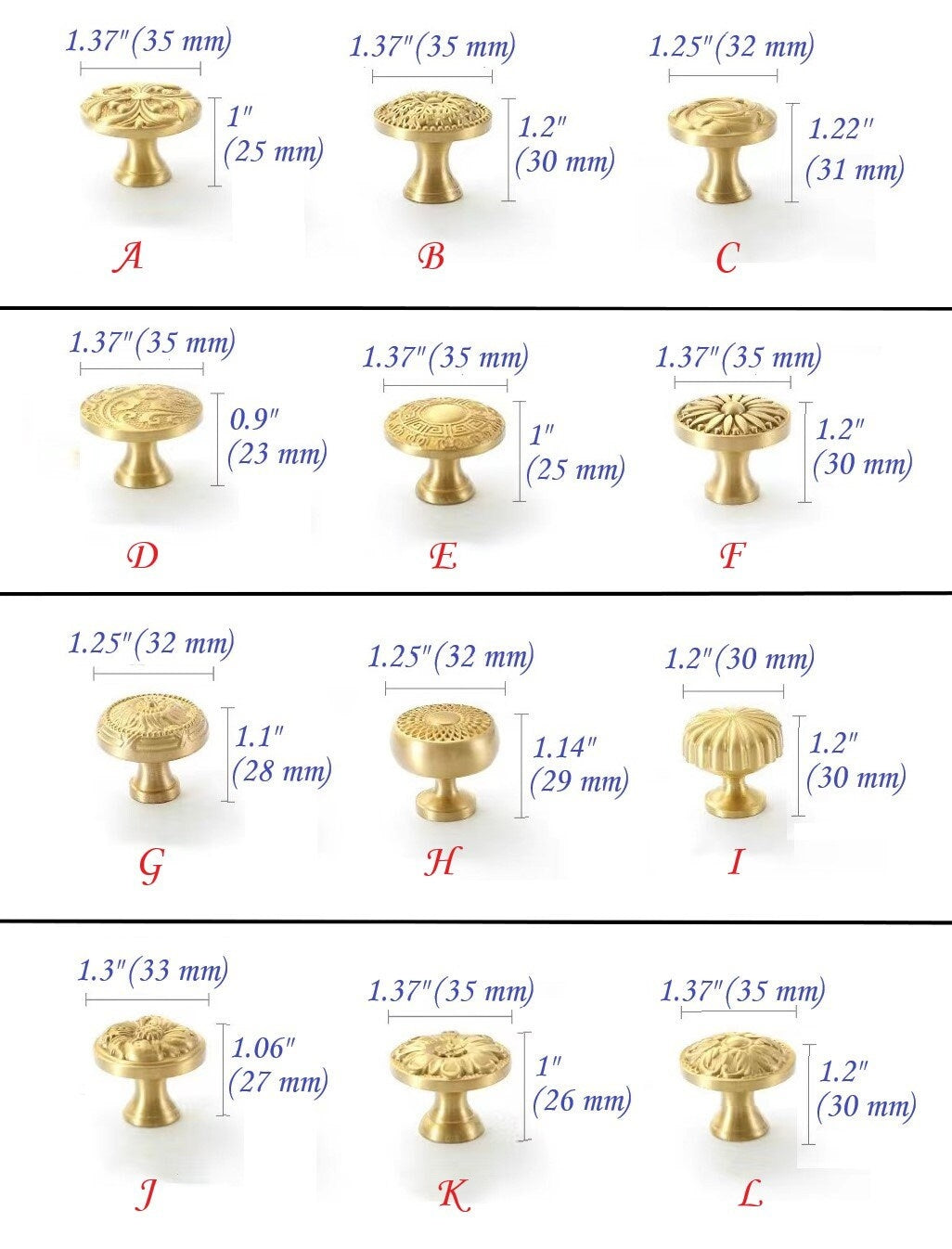 Brass Flower Patterned Knobs, Floral Drawer Pulls, Brushed Gold, Kitchen Cabinet Hardware