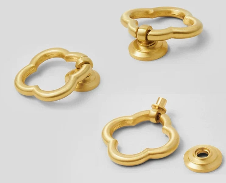 Clover Brass Drop Ring, Cabinet Knobs, MCM Drawer Pulls, Nickel Chrome Bronze