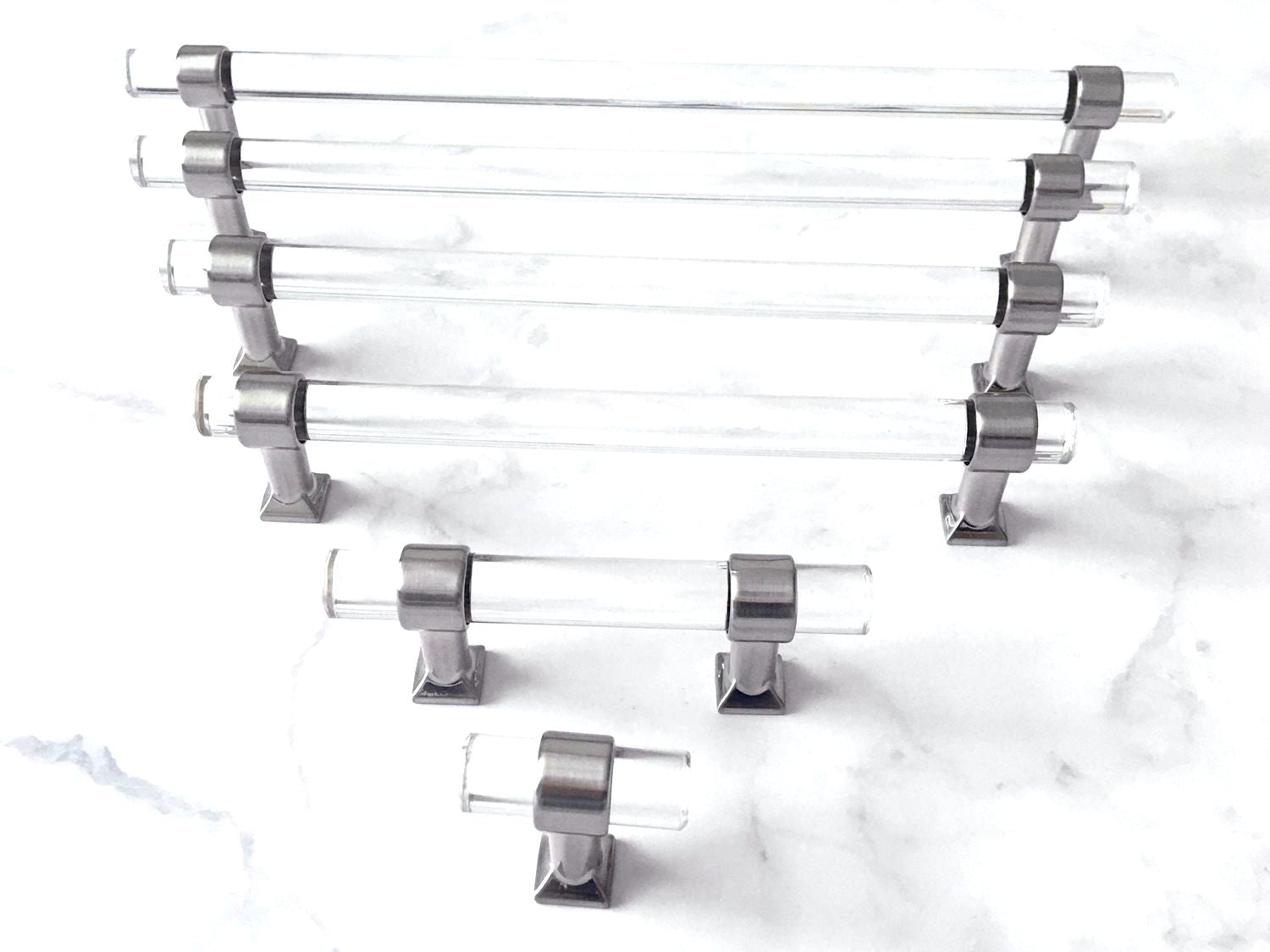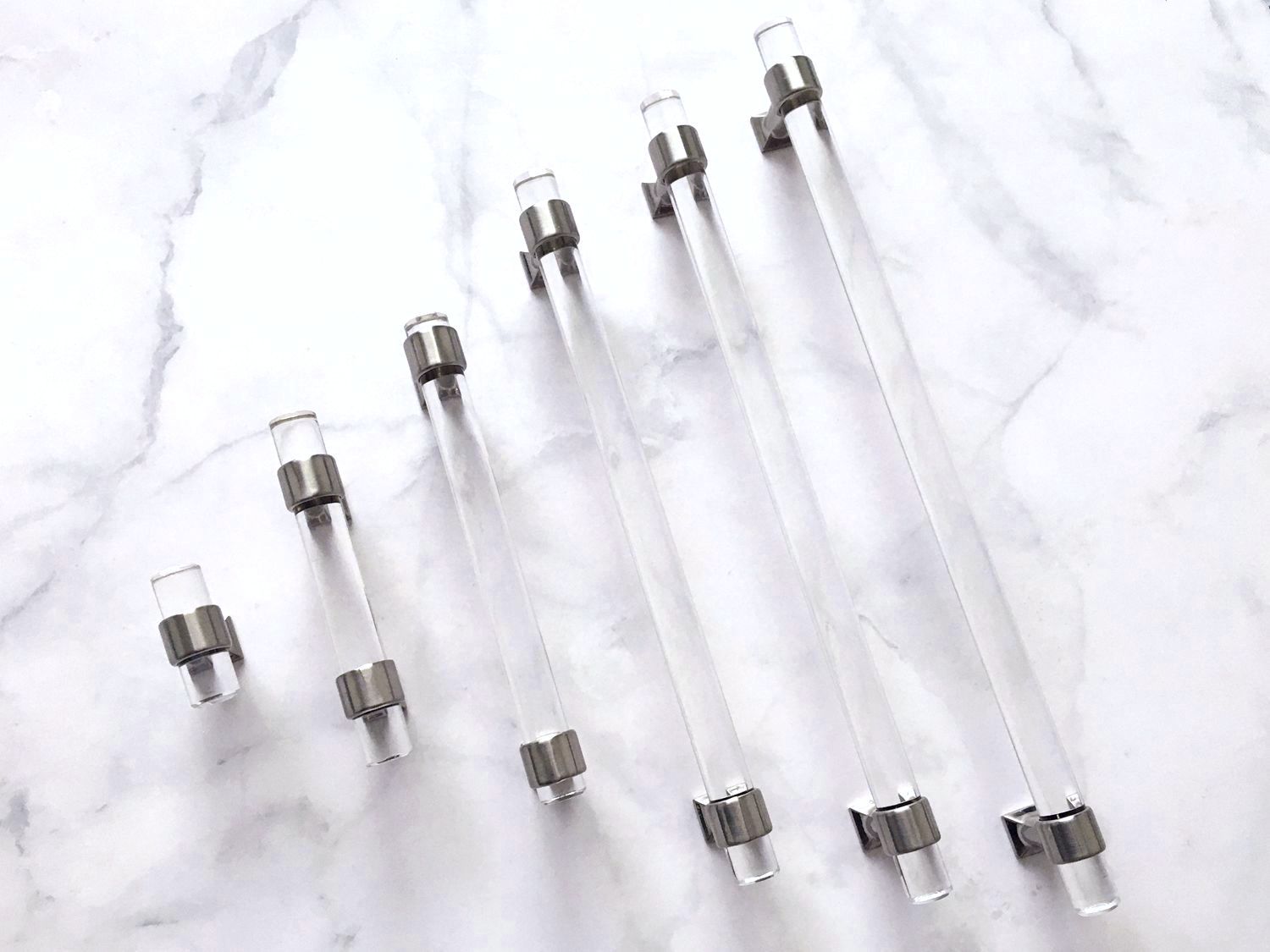 2" 2.5" 2.75" 3 3.25" 3.5" 4 4.25" 4.5 4.75" 3 1/2 5.25" 5.5" 5.75" 6 7 8 10" 12" 18" Lucite Cabinet Pulls Drawer Pull Handle Brushed Nickel Lynns Hardware