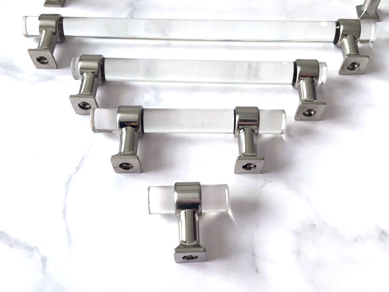 Acrylic Brushed Nickel Steel Drawer Pulls, Lucite Cabinet Handles