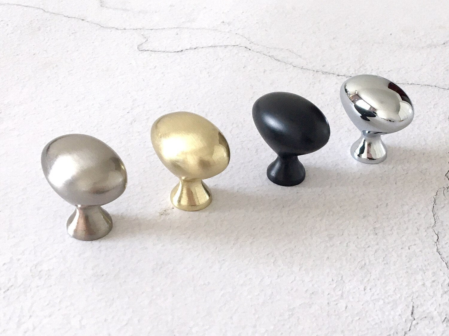 Egg Knob Cabinet Drawer Pull Oval Lynns Hardware Gold Nickel Black Chrome