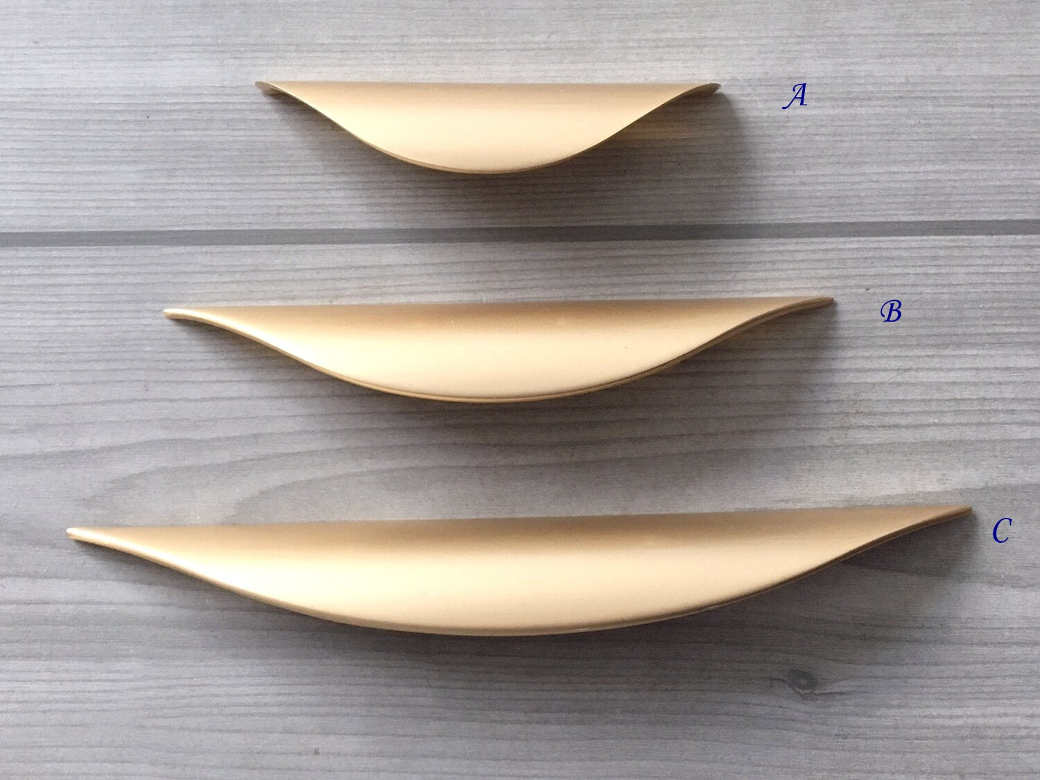 Finger Drawer Pulls, Cabinet Handles, Gold Nickel Black, Mid Century, 32 64 96 mm Holes