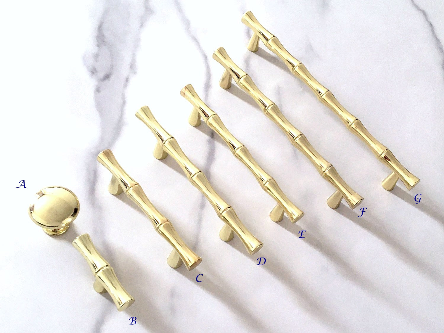 Elevate your kitchen design with these Bamboo Cabinet Pulls and Drawer Knobs in polished and brushed gold finishes. Crafted for durability and style, their smooth, warm gold tone complements various cabinetry styles while providing a comfortable grip. Ideal for modern and classic kitchens alike, this hardware enhances both functionality and aesthetic appeal with subtle sophistication.