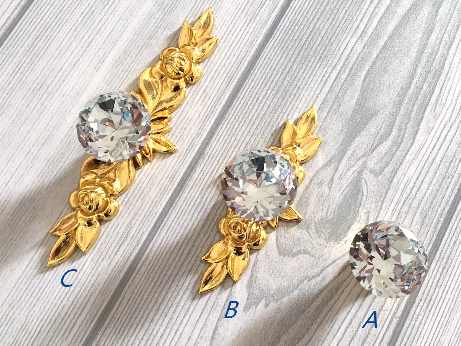 Elevate your cabinetry with these exquisite crystal glass drawer knobs, featuring a delicate floral back plate and sparkling rhinestone accents. The combination of premium glass and ornate metalwork delivers both visual sophistication and reliable functionality.