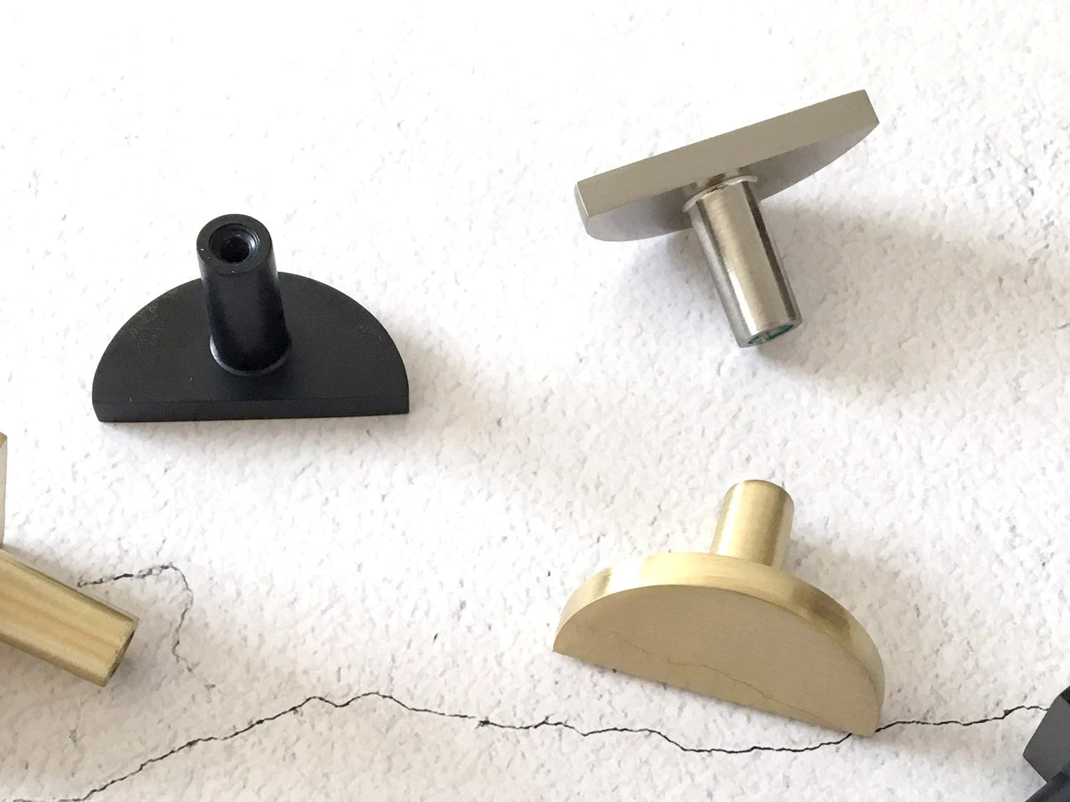 Half Circle Drawer Knobs, Brushed Gold, Nickel, Black
